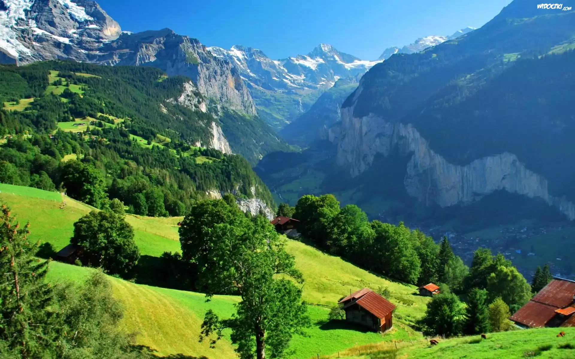 Zdjęcia, Góry, Domy, Wengen, Szwajcaria