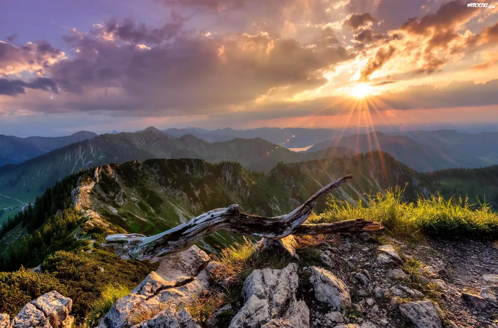 Zdjęcia, Góry, Kamienie, Przebijające, Światło, Konar