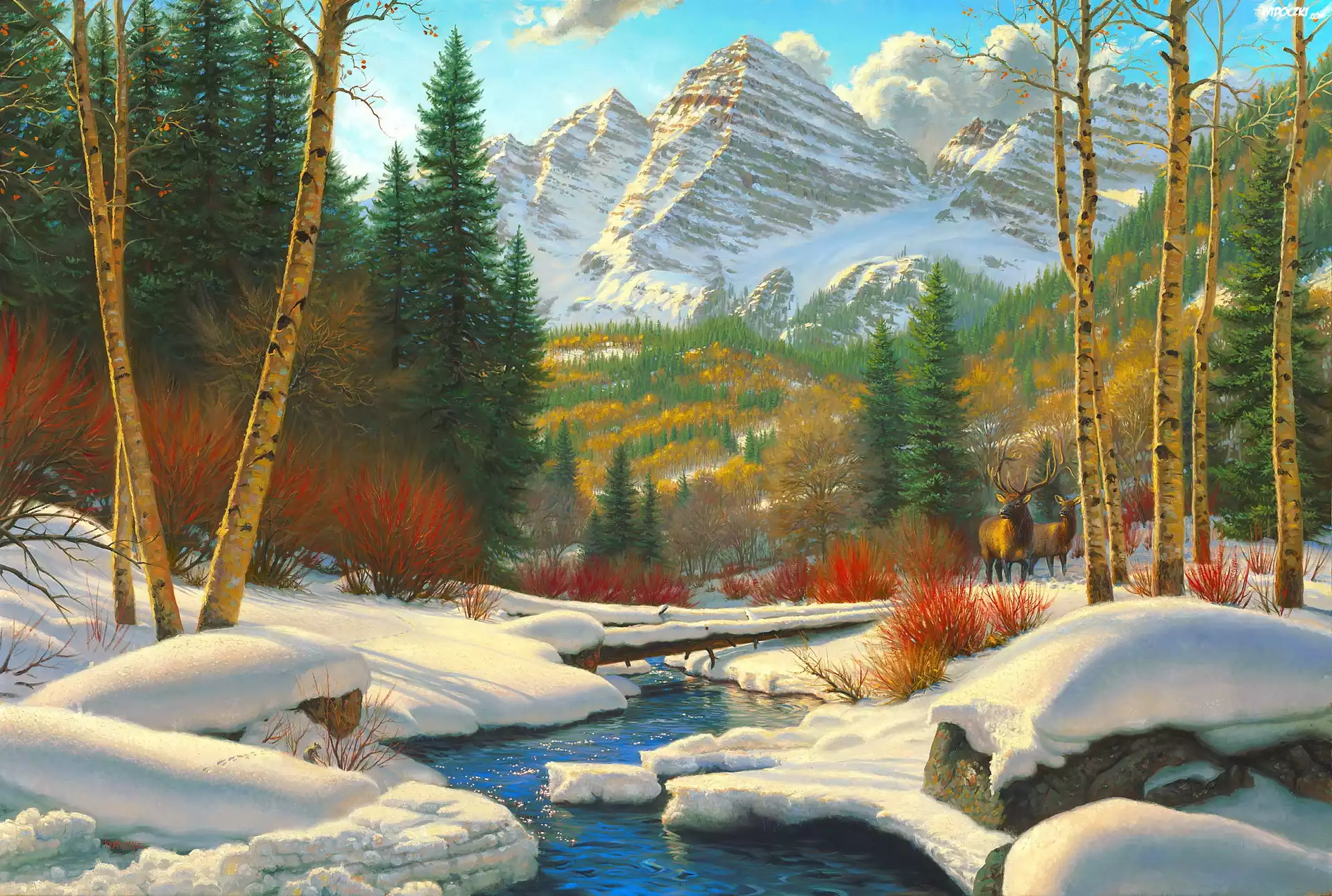 Góry, Zima, Widoczek, Malarstwo