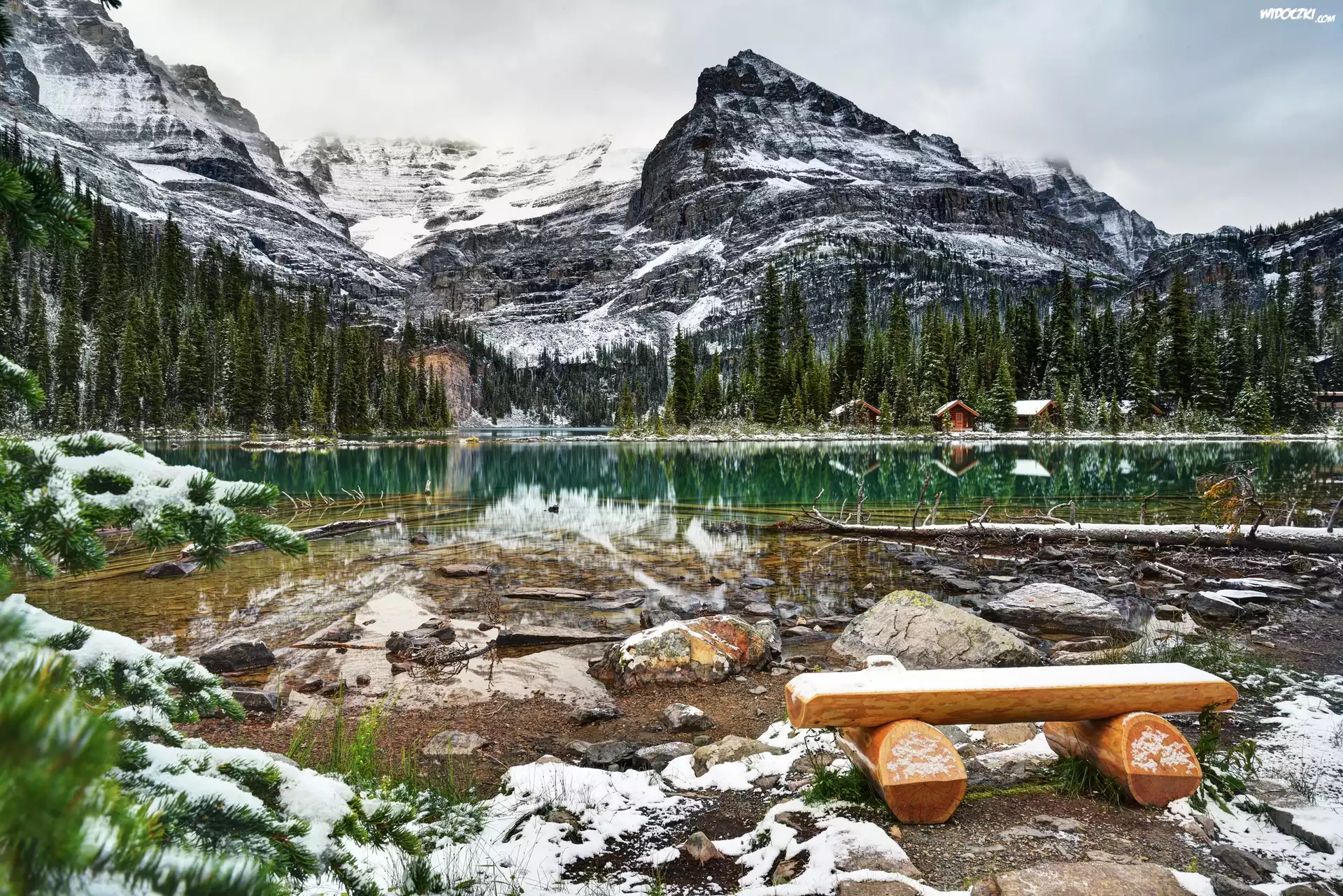 Zdjęcia, Ławeczka, Widok, Na, Góry, Jezioro