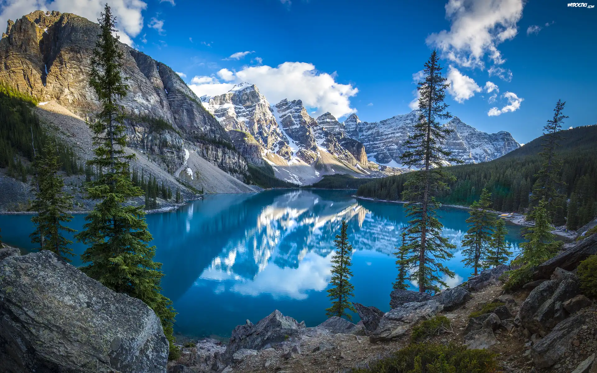 Zdjęcia, Góry, Jezioro, Świerki, Kamienie