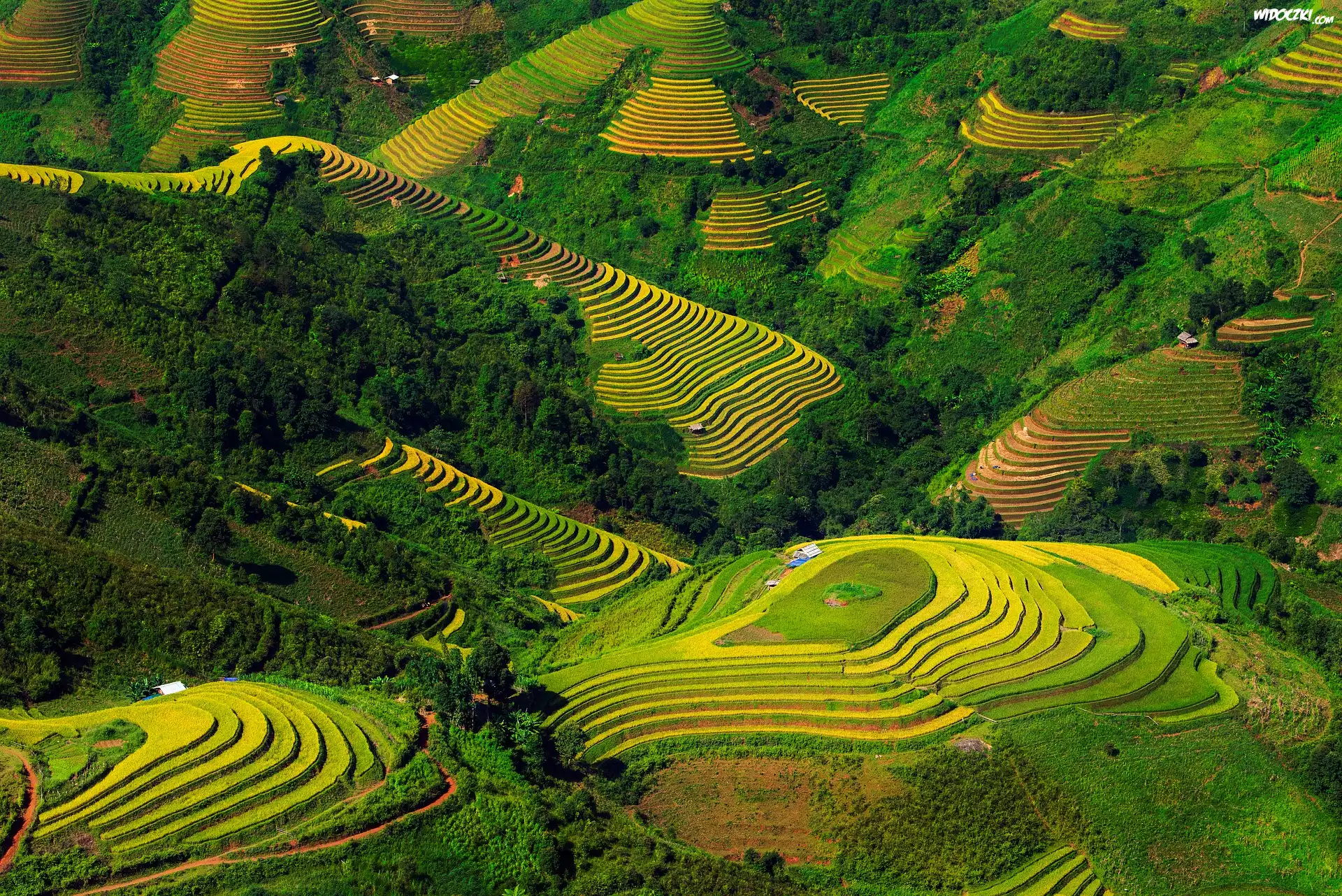 Pola, Tarasy ryżowe, Góry, Wzgórza, Wietnam