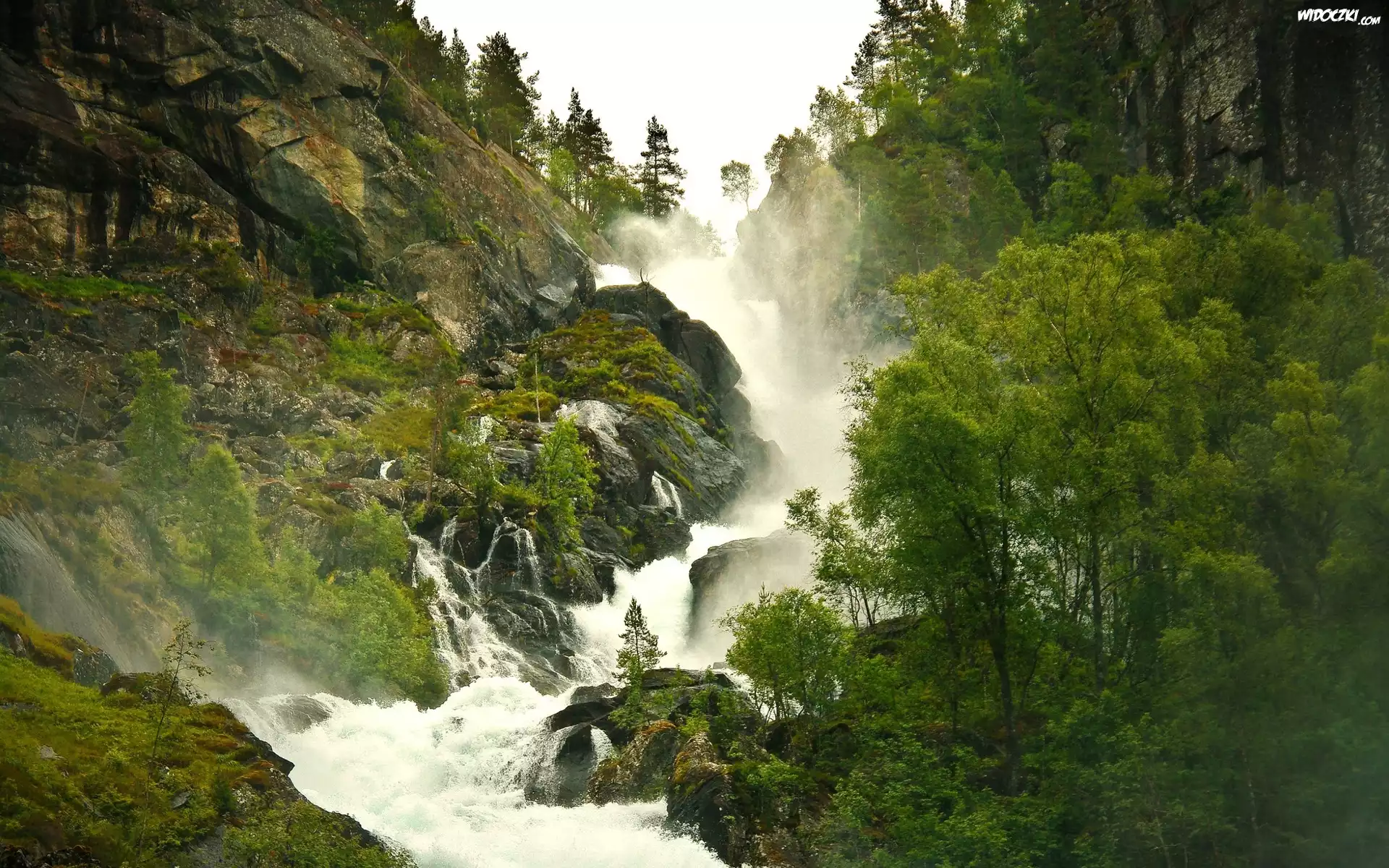 Góra Wodospad Góra, Niebo Skały, Wodospad Skały, Drzewka, Morze Morze, Skała Góra Kajakarstwo, Wodospad Góra Góra, Skały Skała, Wodospad Skały, Ciemne, Niebo, Stonehenge Szeroki Wodospad Pustynia, Skała, Roślinność