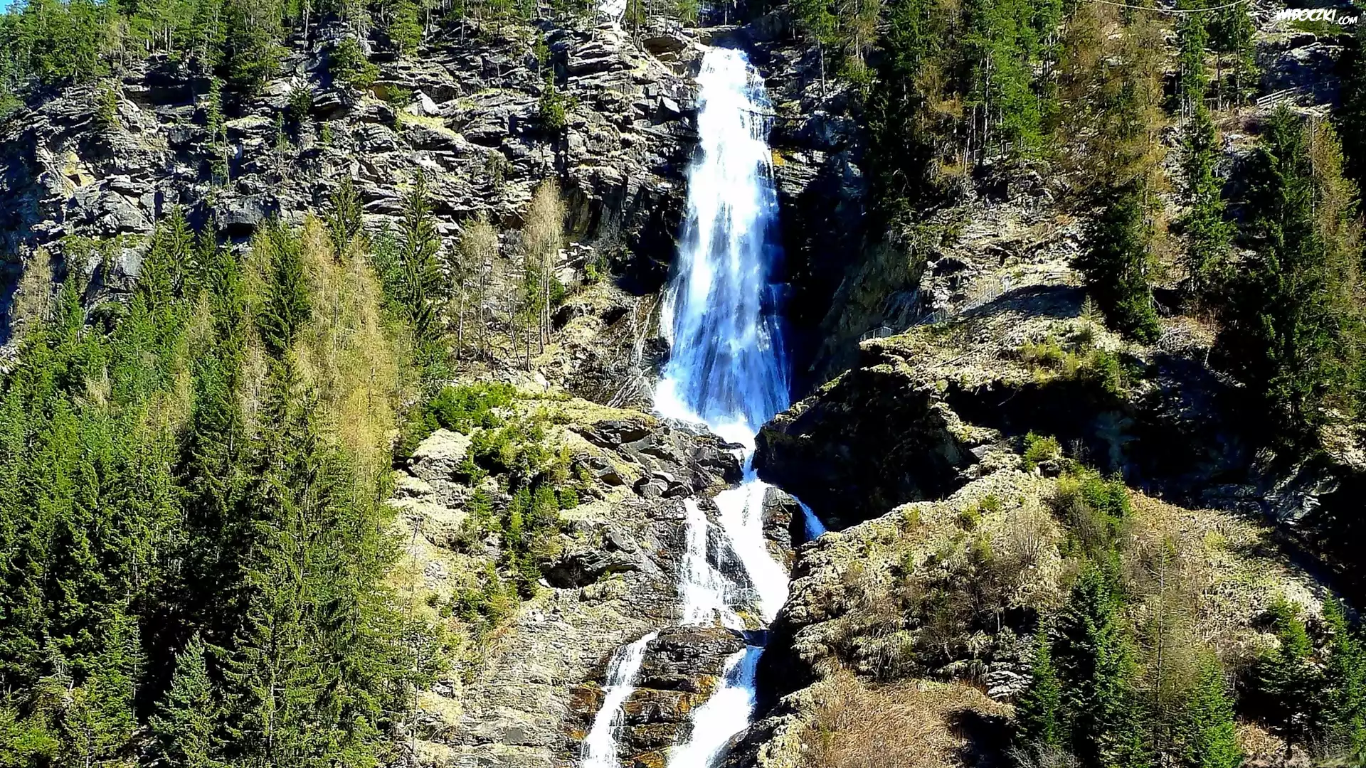 Zdjęcia, Góry, Alpy, Skały, Las, Wodospad, Tyrol