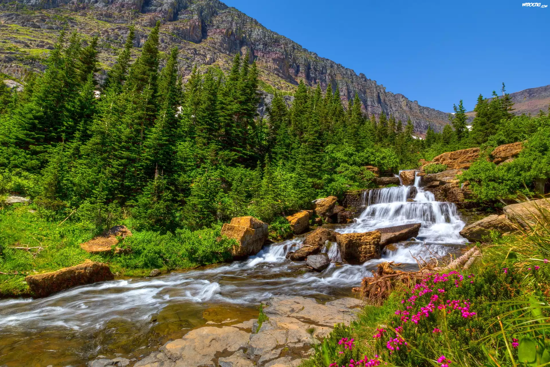 Zdjęcia, Góry, Zieleń, Wodospad, Rzeka