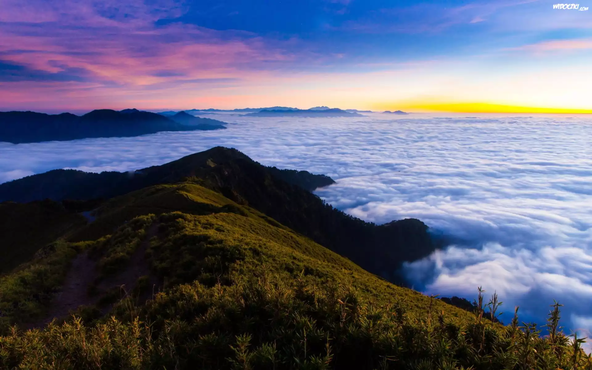 Zdjęcia, Góry, Ścieżka, Chmury, Wschód, Słońca