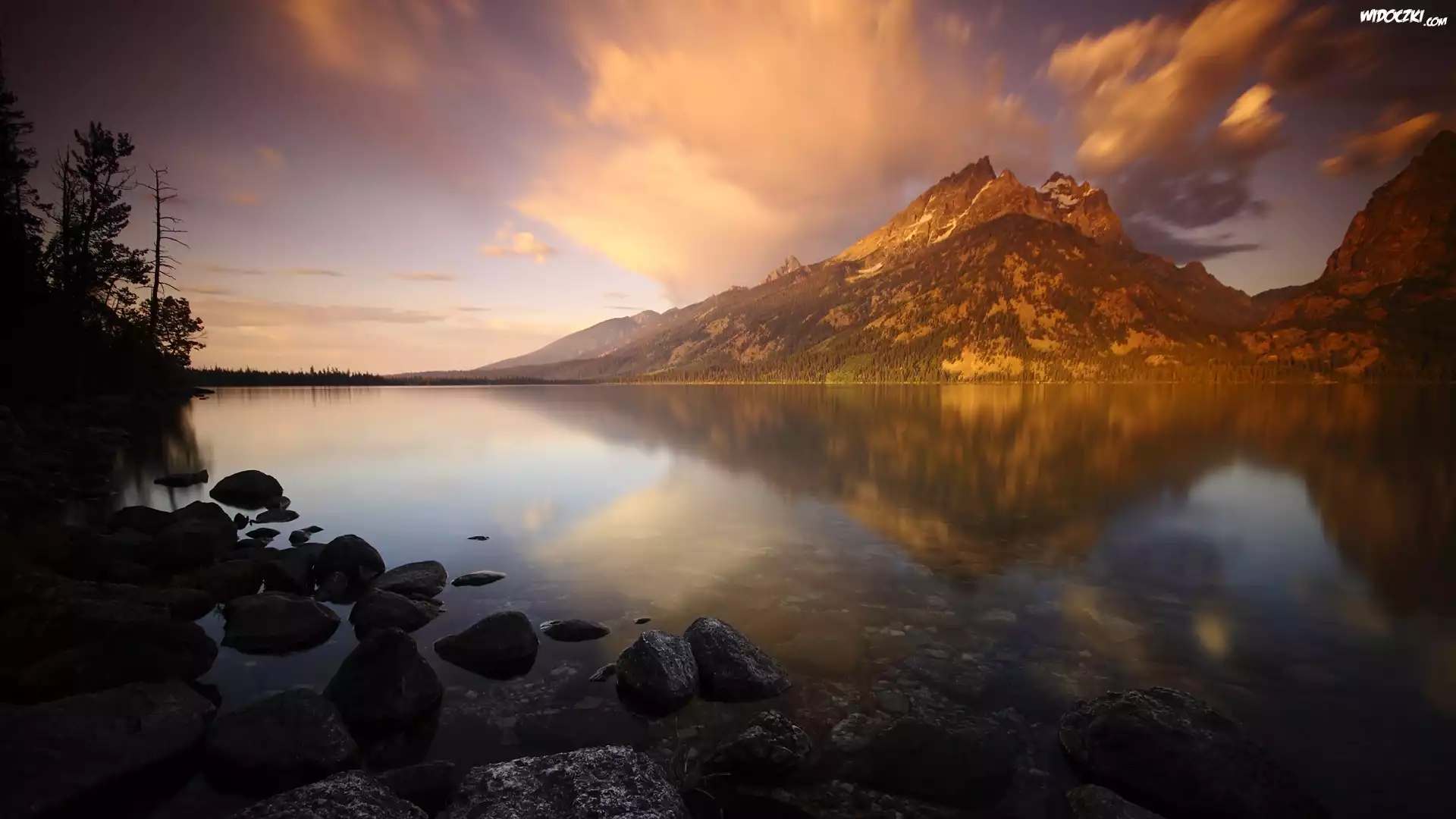 Góry, Jezioro, Kamienie, Wschód Słońca