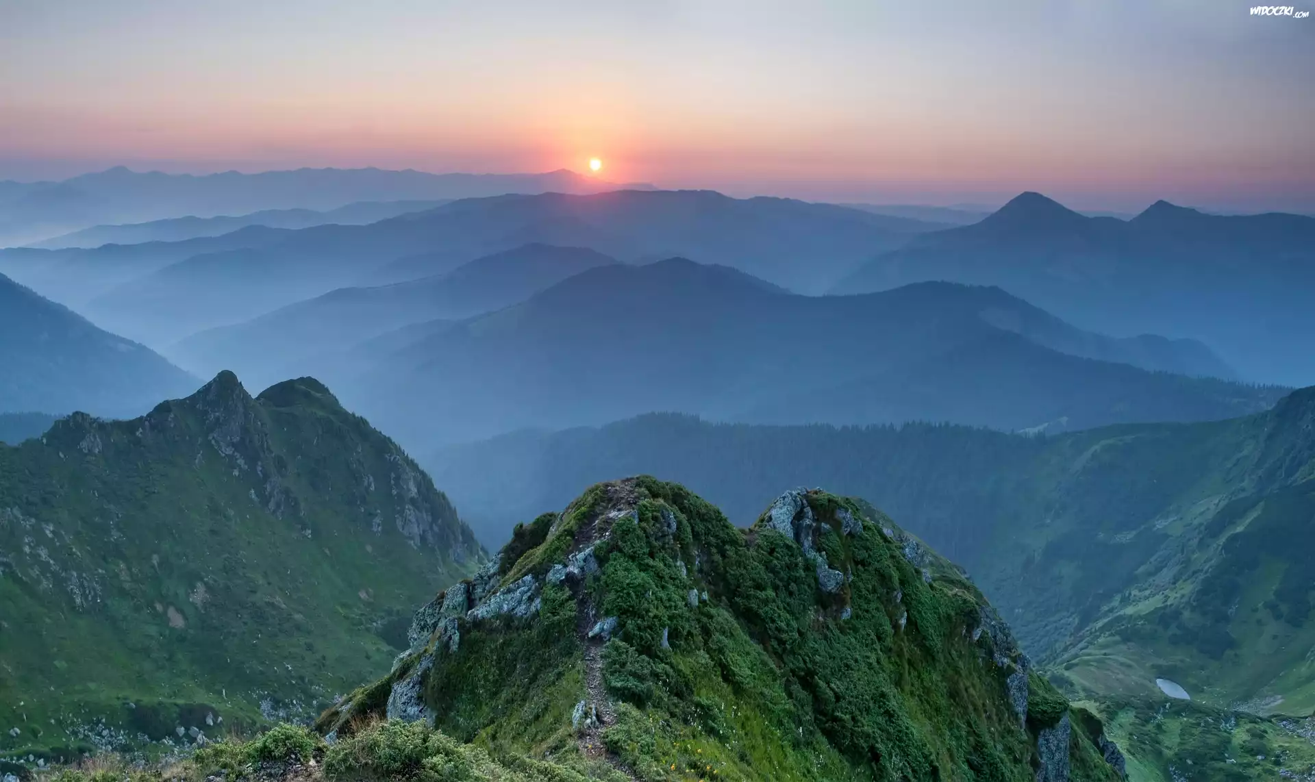 Zdjęcia, Góry, Mgła, Wschód słońca