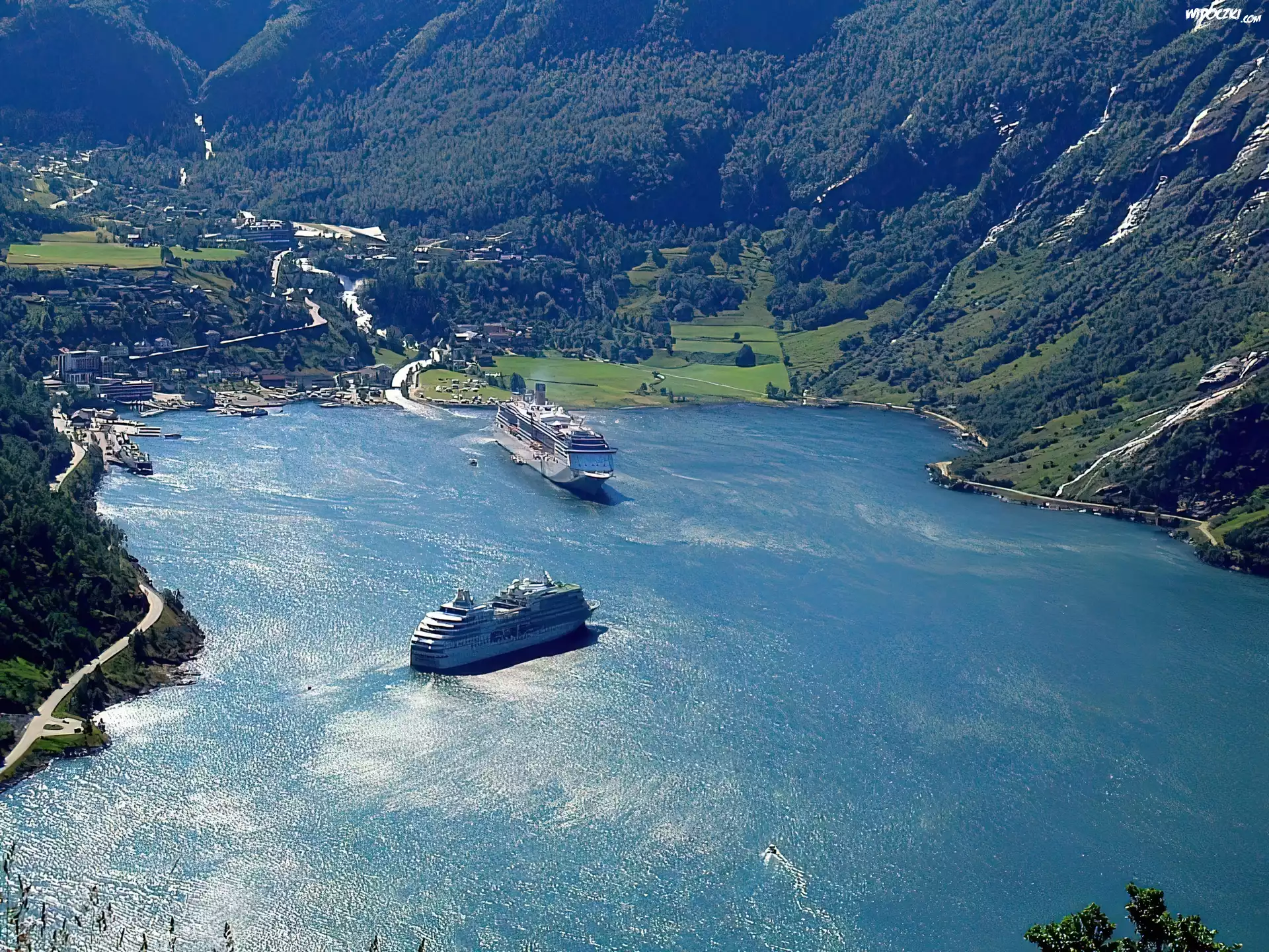 Zdjęcia, Góry, Jezioro, Wybrzeże, Statki