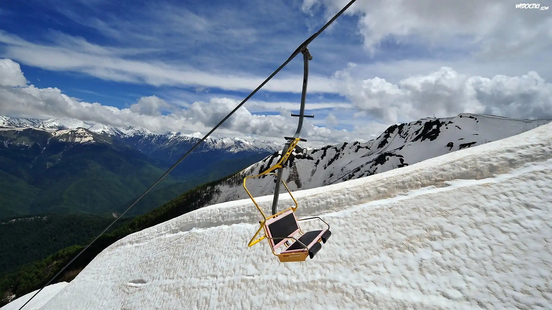Góry, Lasy, Ośnieżony, Stok, Wyciąg, Krzesełkowy
