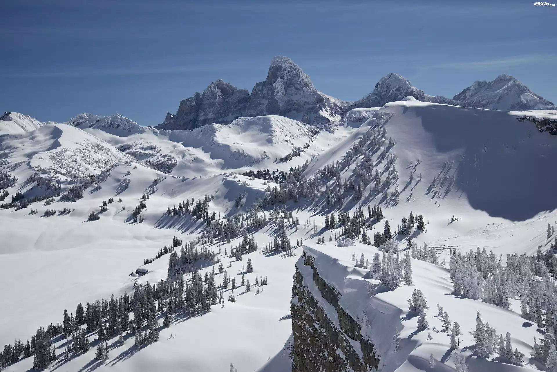 Zdjęcia, Stany Zjednoczone, Wyoming, Park Narodowy Grand Teton, Zima, Góry