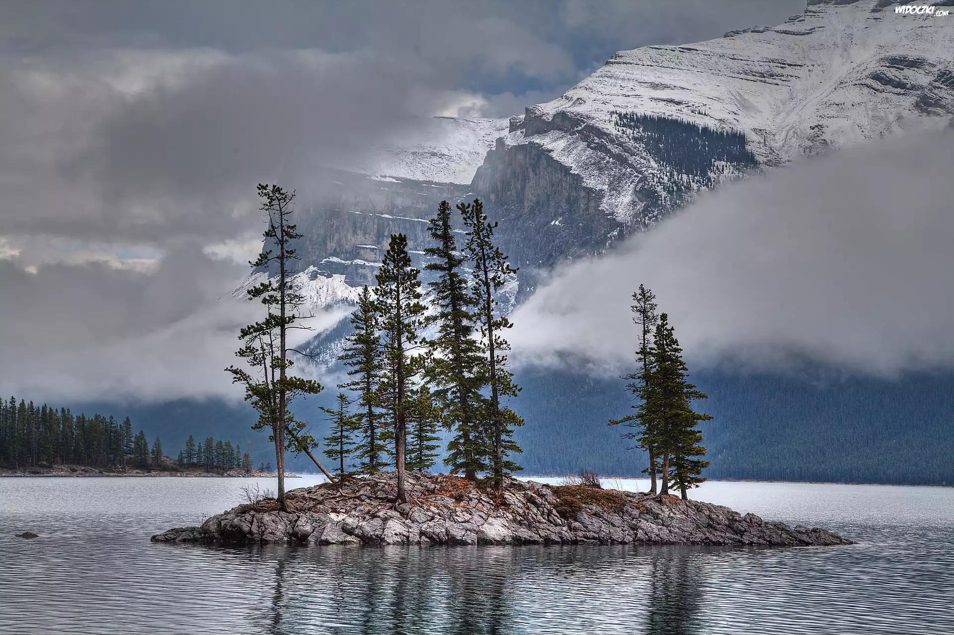 Góry, Jezioro, Wysepka, Zima