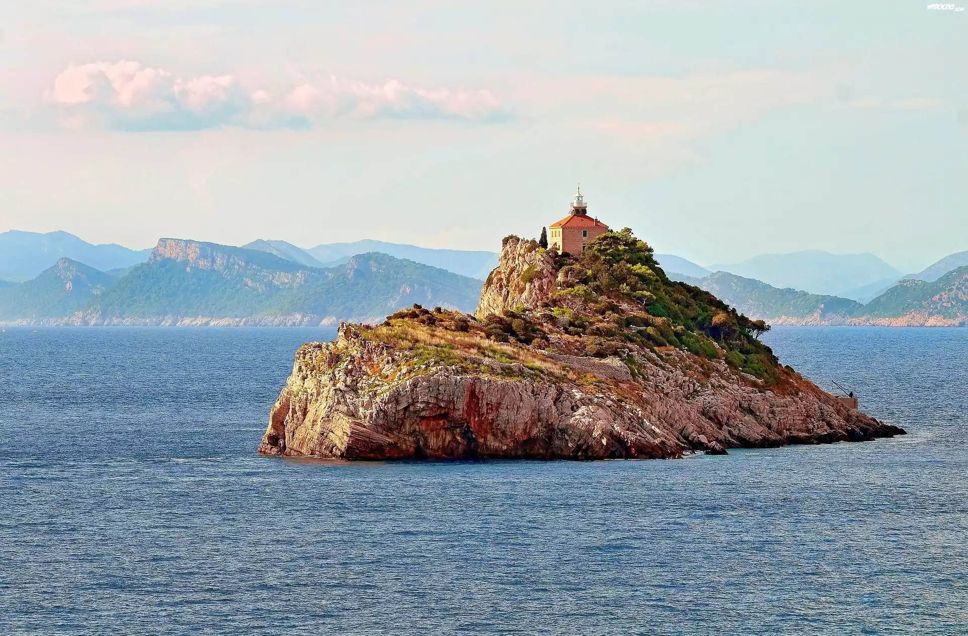 Zdjęcia, Góry, Morze, Wysepka, Kościół