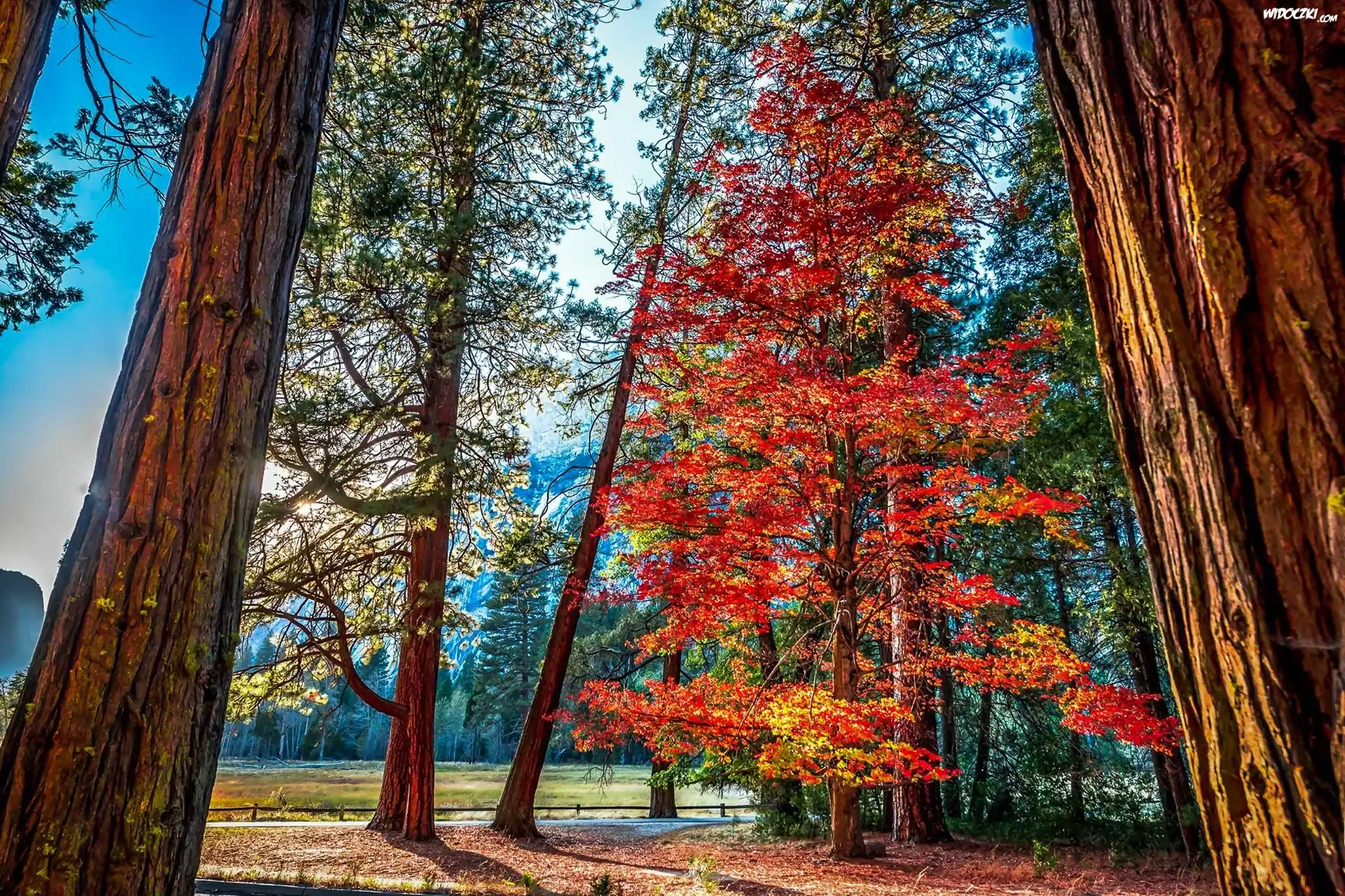 Zdjęcia, Stany Zjednoczone, Stan Kalifornia, Park Narodowy Yosemite, Góry, Las, Drzewa