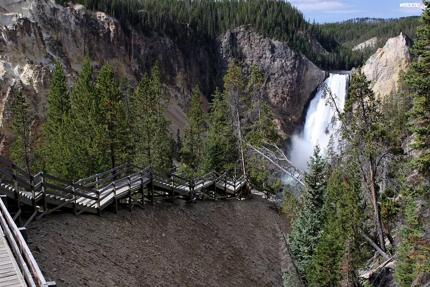 Zdjęcia, Stany Zjednoczone, Park Narodowy Yellowstone, Góry, Wodospad Yellowstone