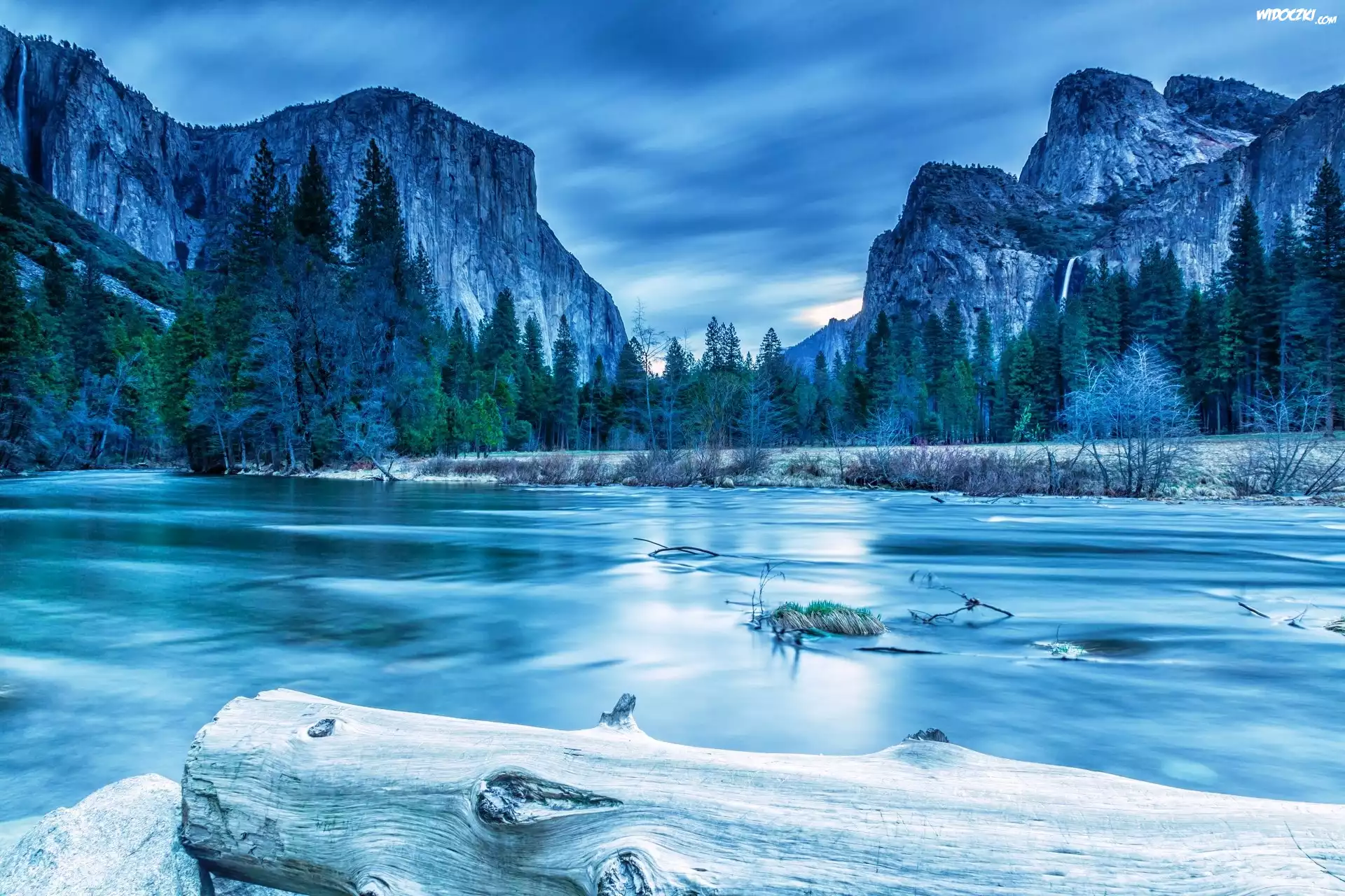Zdjęcia, Góry, Las, Rzeka, Yosemite, Kalifornia