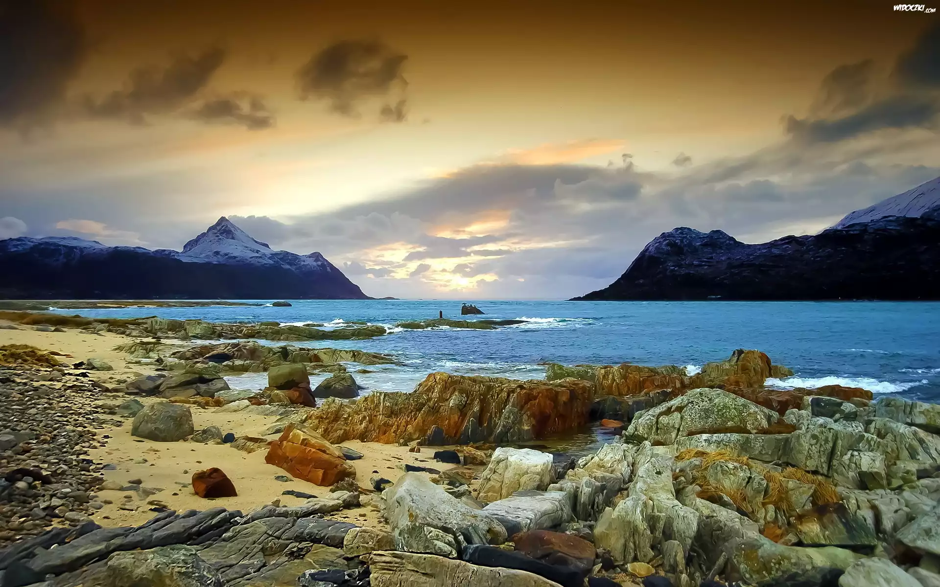 Zdjęcia, Góry, Woda, Kamienie, Zachmurzone, Niebo