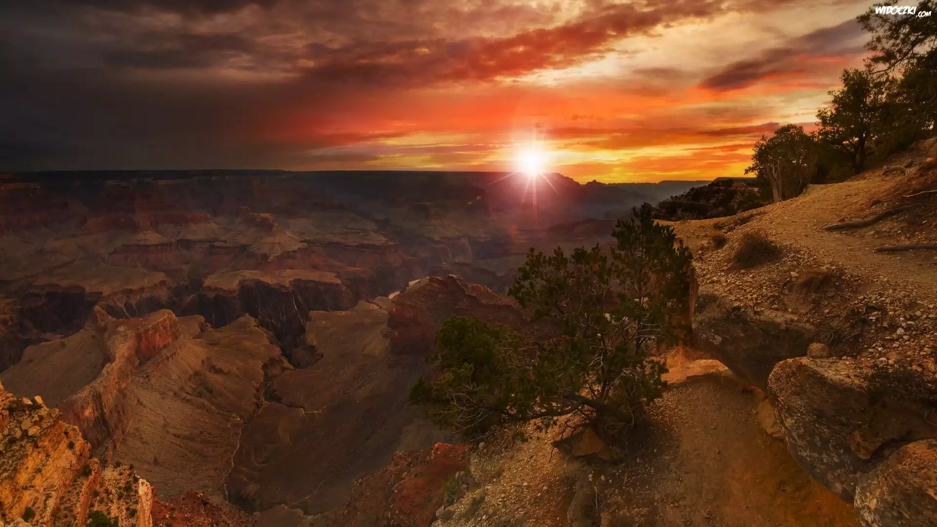 Zdjęcia, Góry, Drzewo, Zachód, Słońca