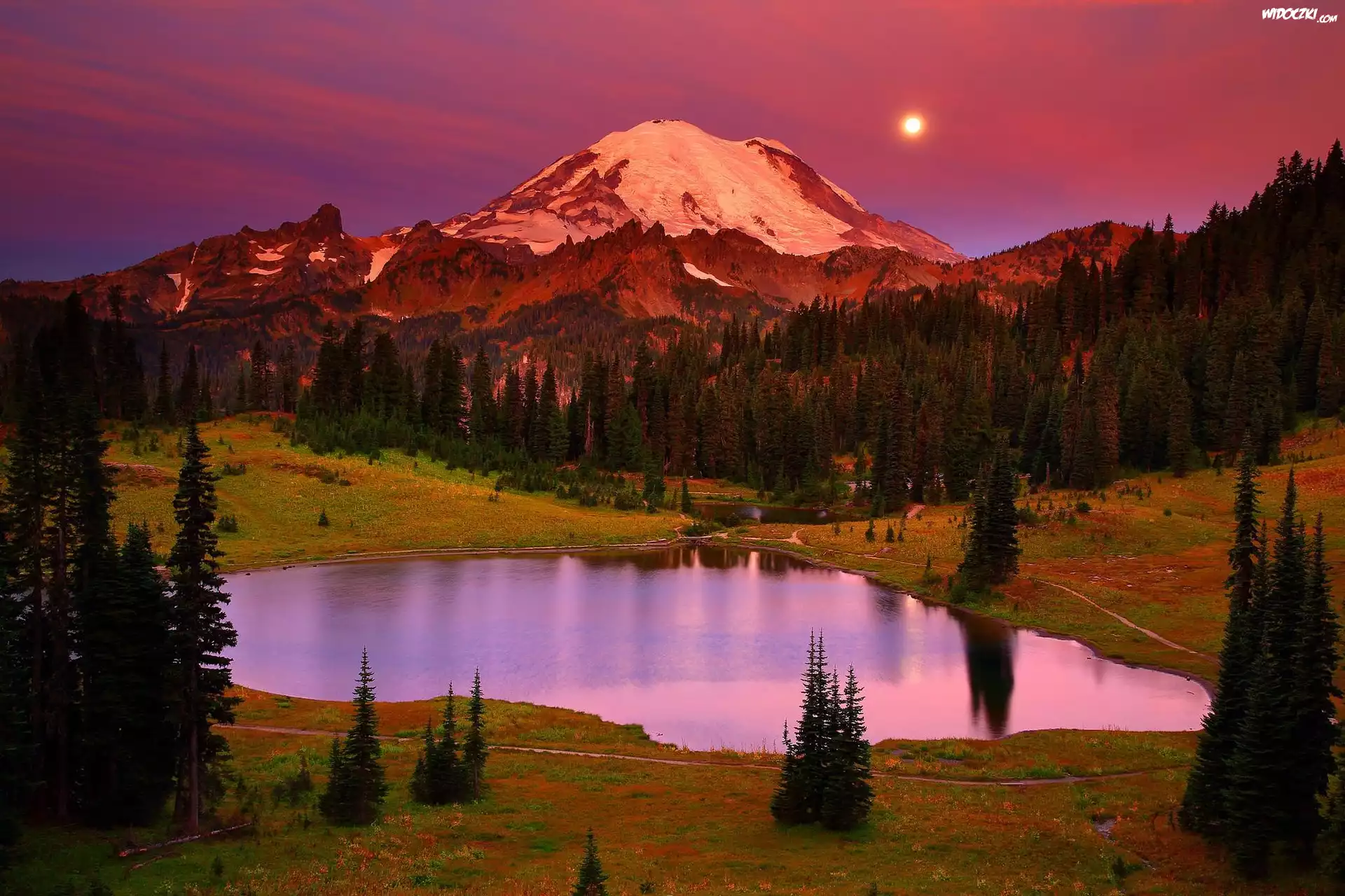 Zdjęcia, Góry, Lasy, Jeziorko, Zachód Słońca