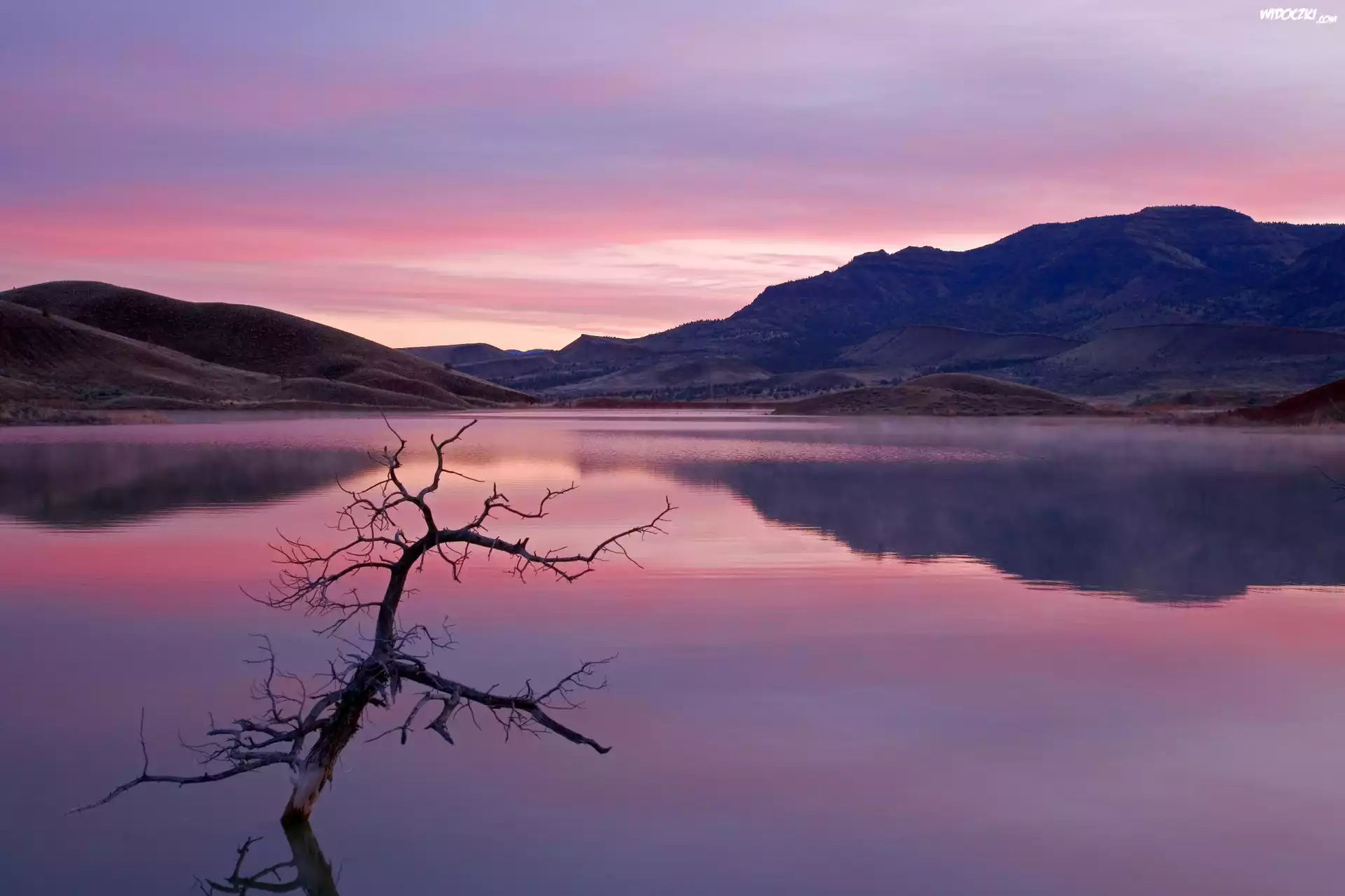 Zdjęcia, Góry, Jezioro, Zachód, Słońca