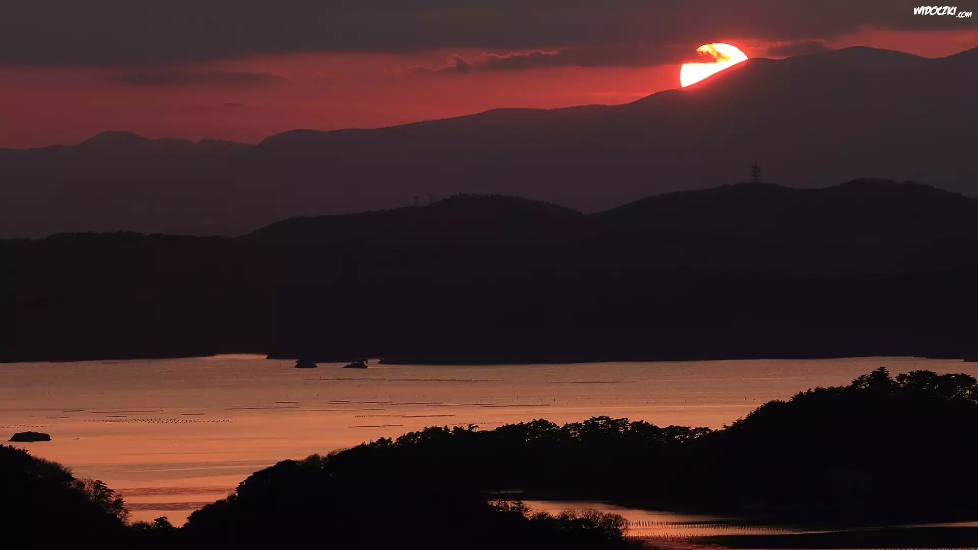 Góry, Jezioro, Zachód, Słońca