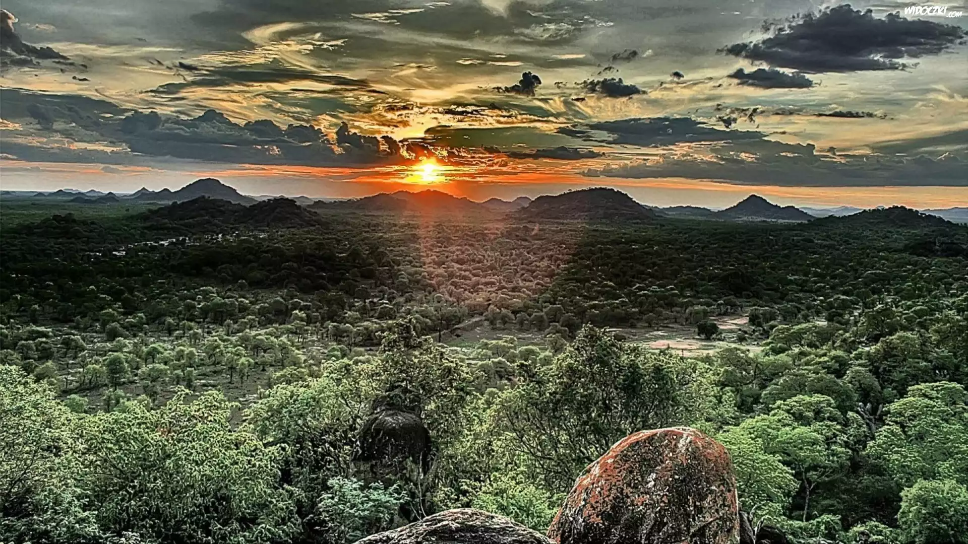 Góry, Las, Zachód, Słońca