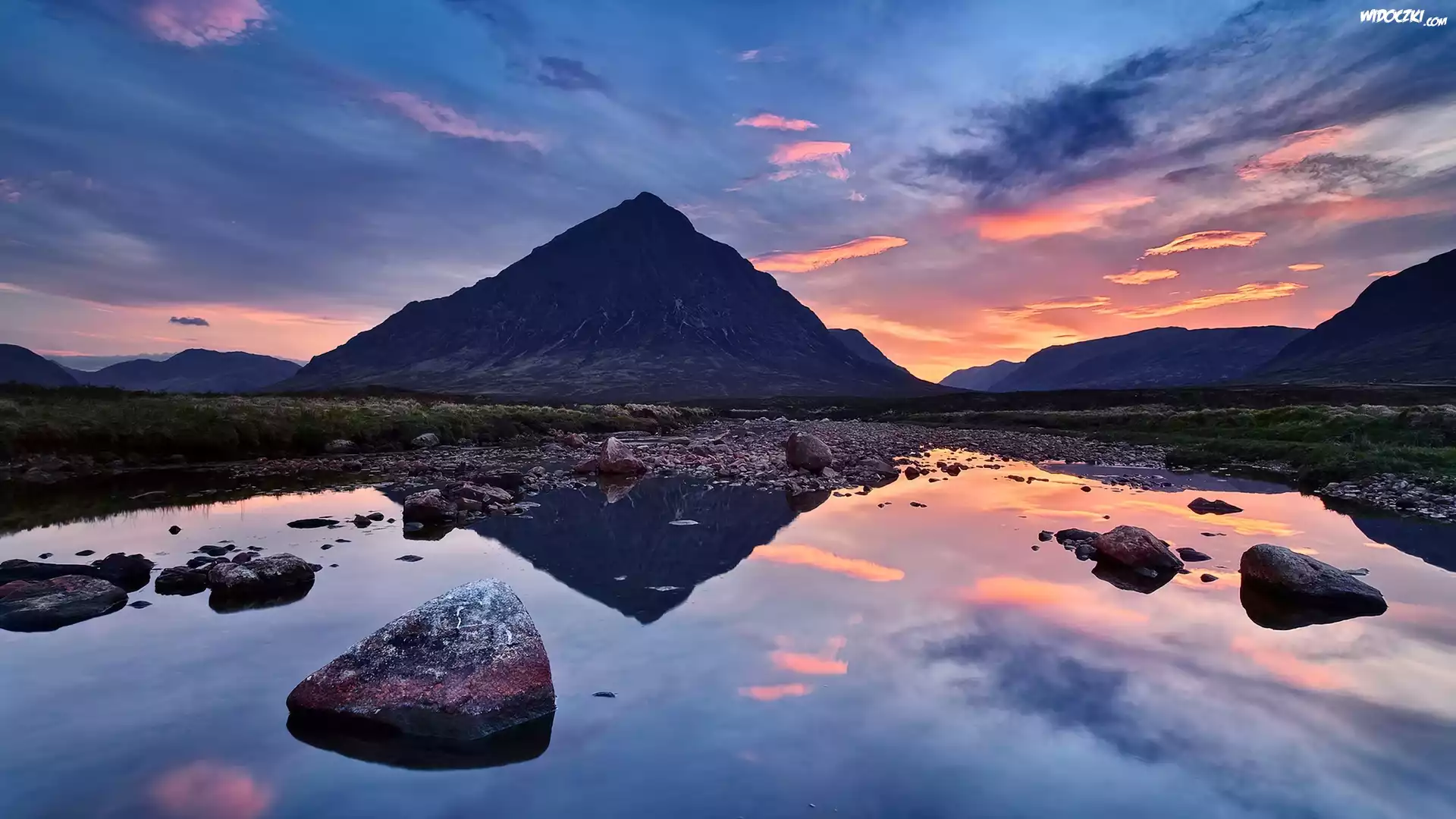 Zdjęcia, Góry, Kamienie, Woda, Zachód, Słońca
