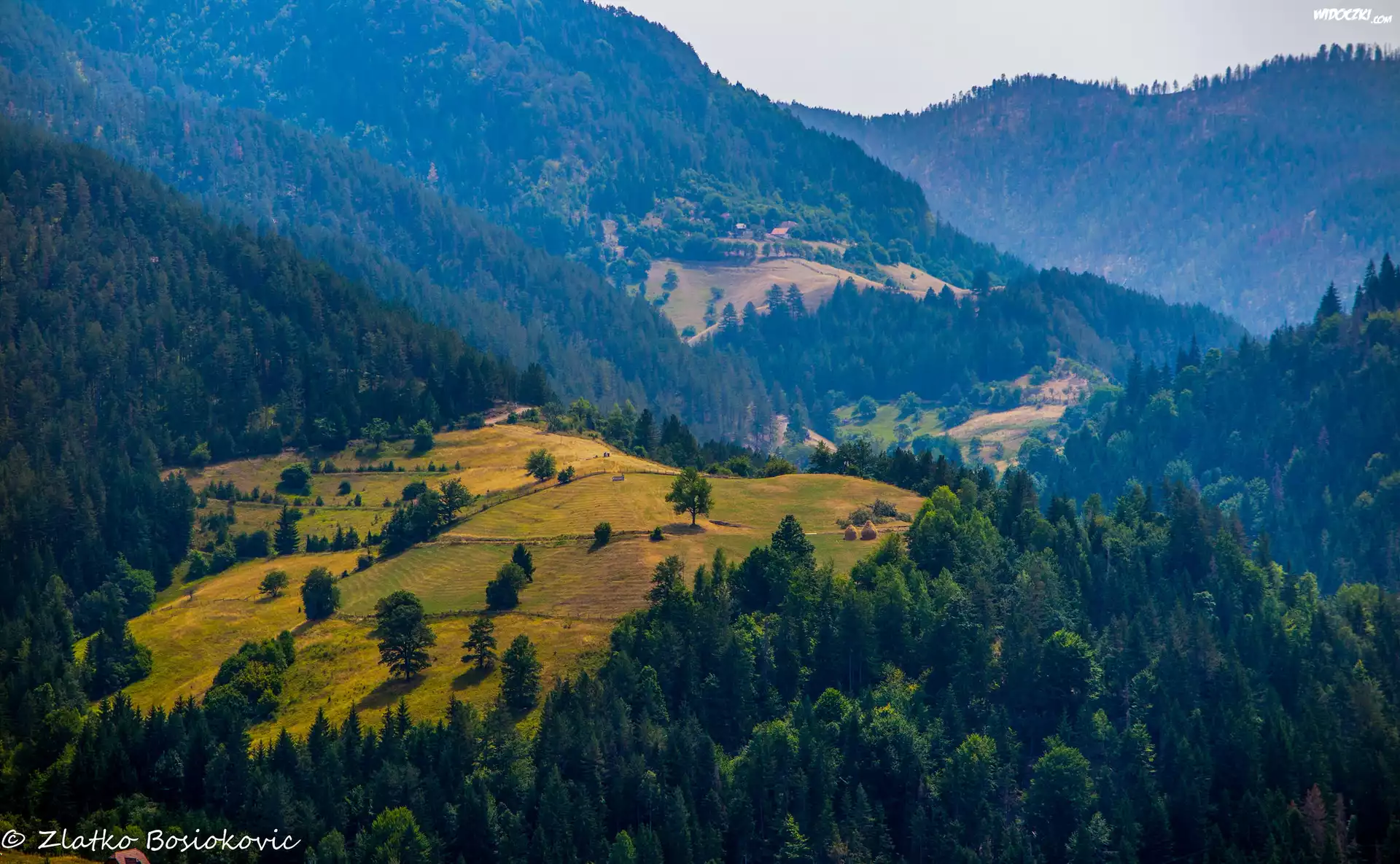 Zdjęcia, Góry, Doliny, Drzewa, Pola, Zalesione, Wzgórza