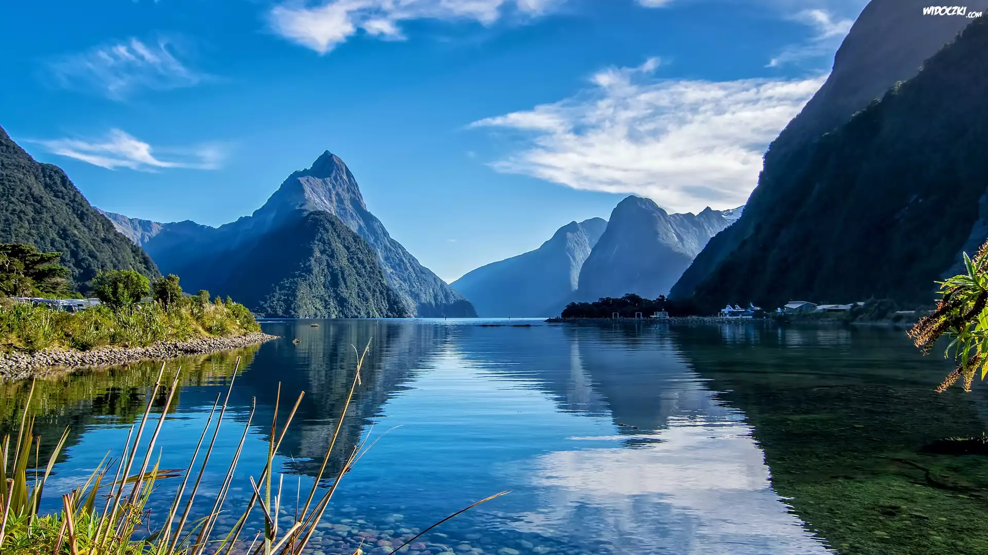 Zatoka Milforda, Fiord Milford, Góry, Roślinność, Chmury, Park Narodowy Fiordland, Wyspa Południowa, Nowa Zelandia |