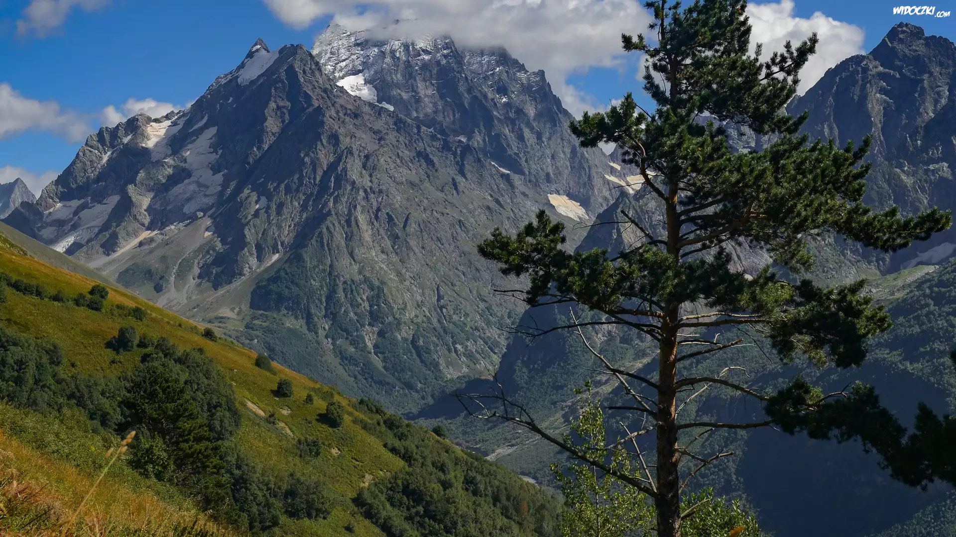 Zdjęcia, Góry, Drzewo, Zbocze, Krzewy
