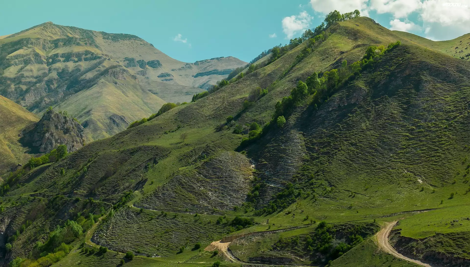 Góry, Drzewa, Zielone, Wzgórza