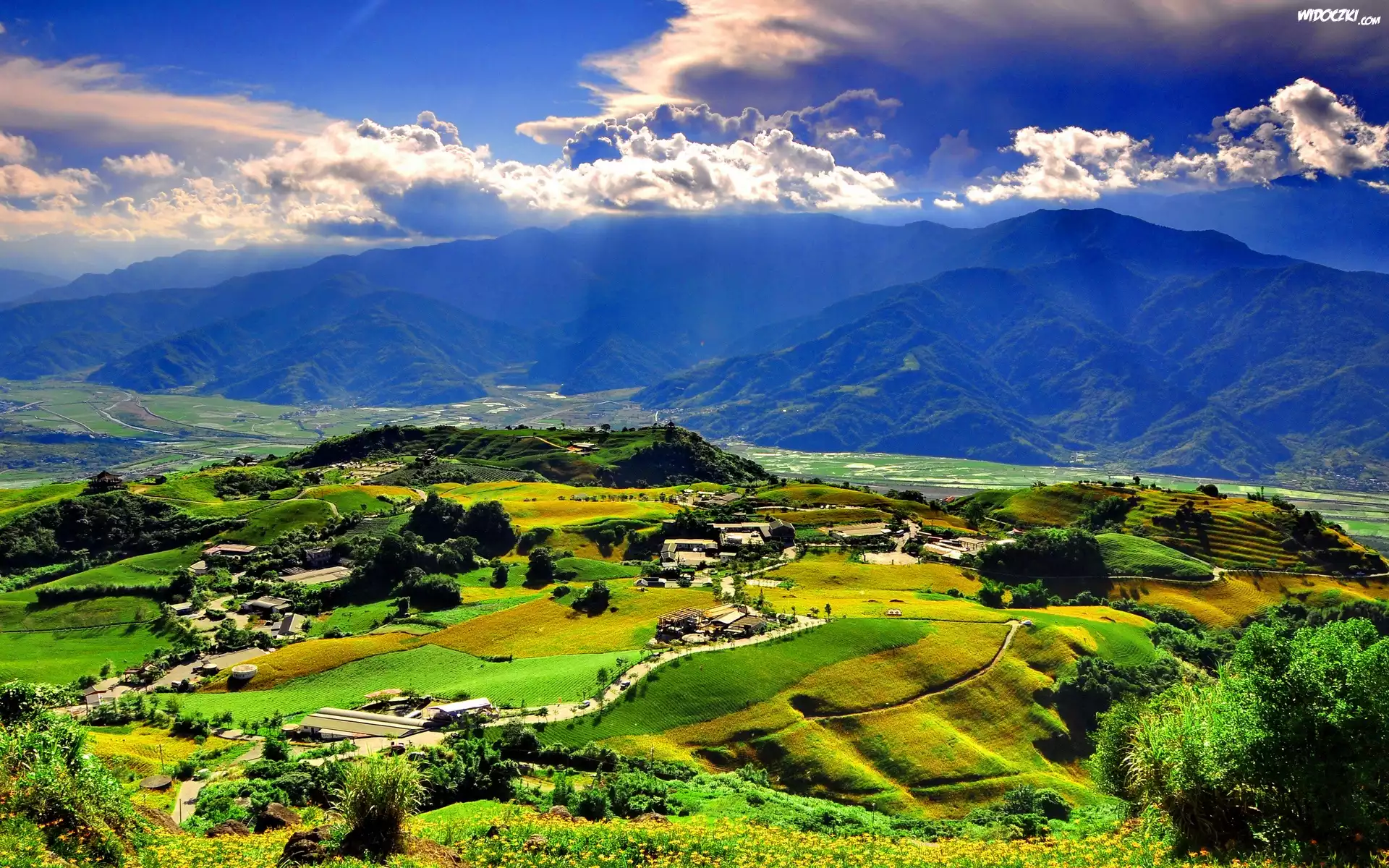 Zdjęcia, Góry, Wioska, Zielone, Pagórki