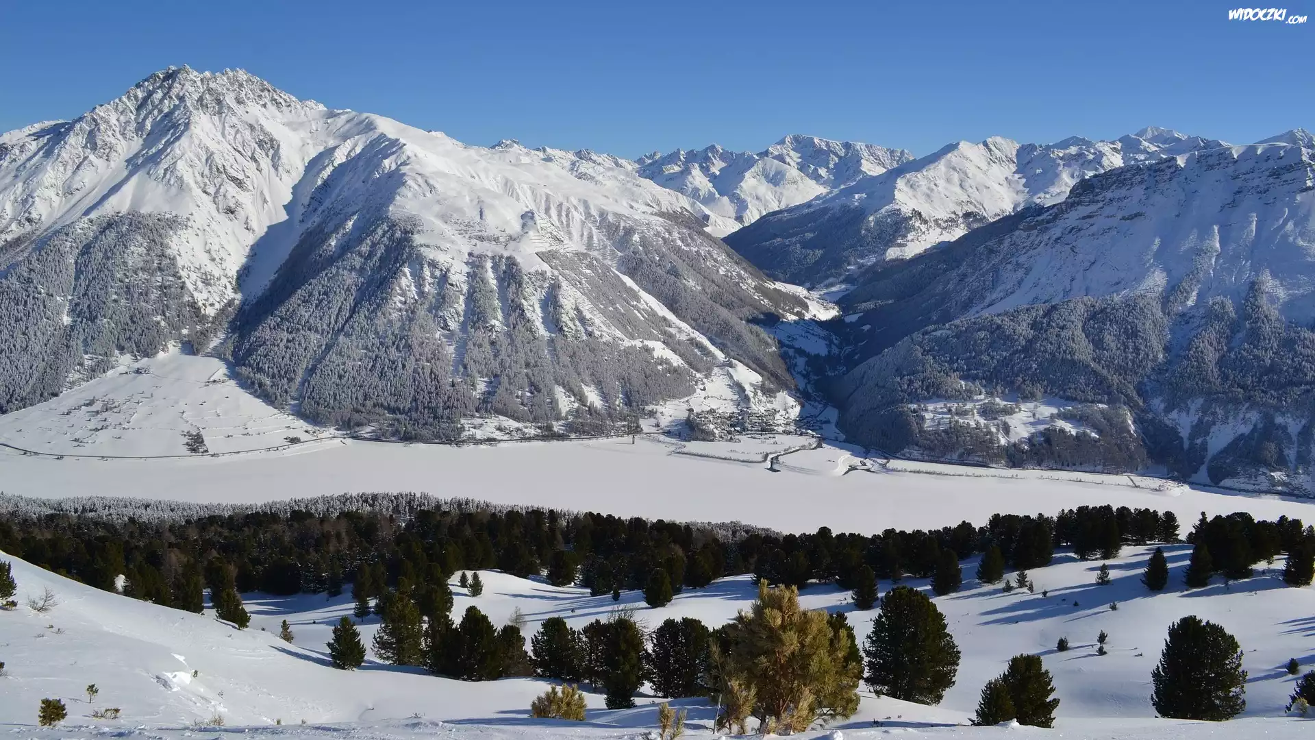 Góry, Choinki, Zima Góra, Niebo Góra, Wodospady, Morze Dziwna Góra Góra, Rzeki Chata, Las, Zima, Święta Zima Góra Zima, Śnieg, Łoś Góra, Jeziora Góra, Rzeki Góra, Zachód Słońca Zachód Słońca, Chmura, Góra Góra, Niebo