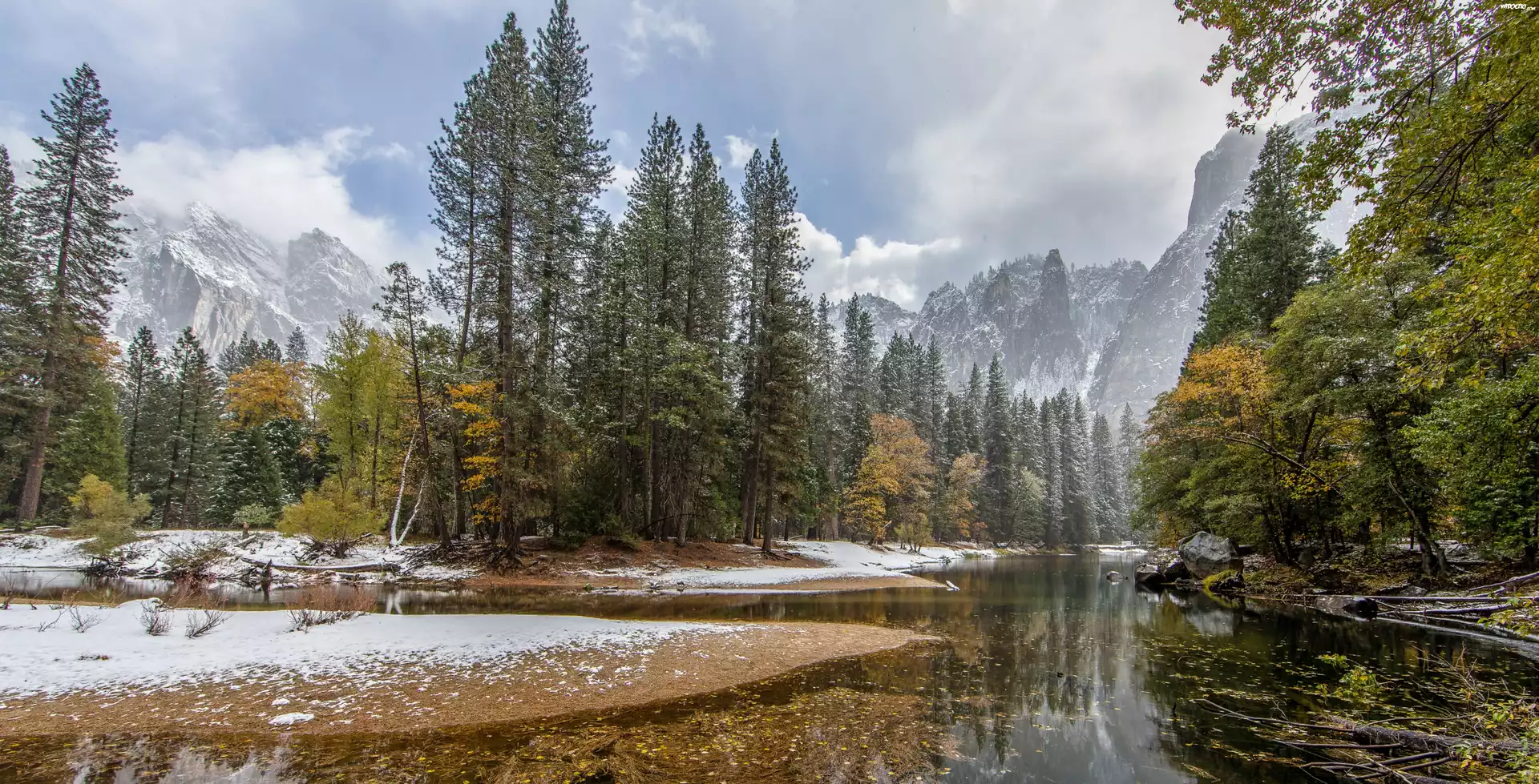 Zdjęcia, Góry, Las, Zima, Rzeka