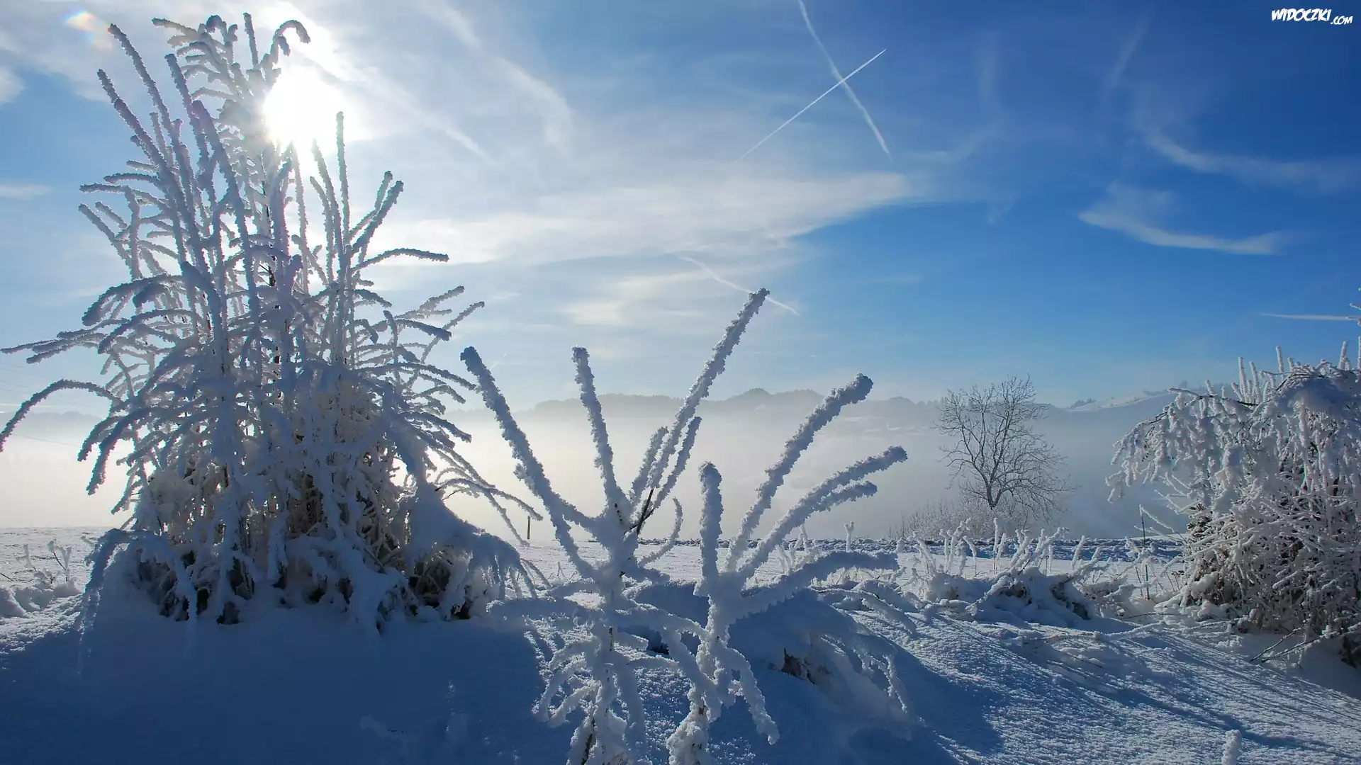 Zdjęcia, Zima, Góry, Ośnieżone, Rośliny, Trawy, Krzewy, Zaspy