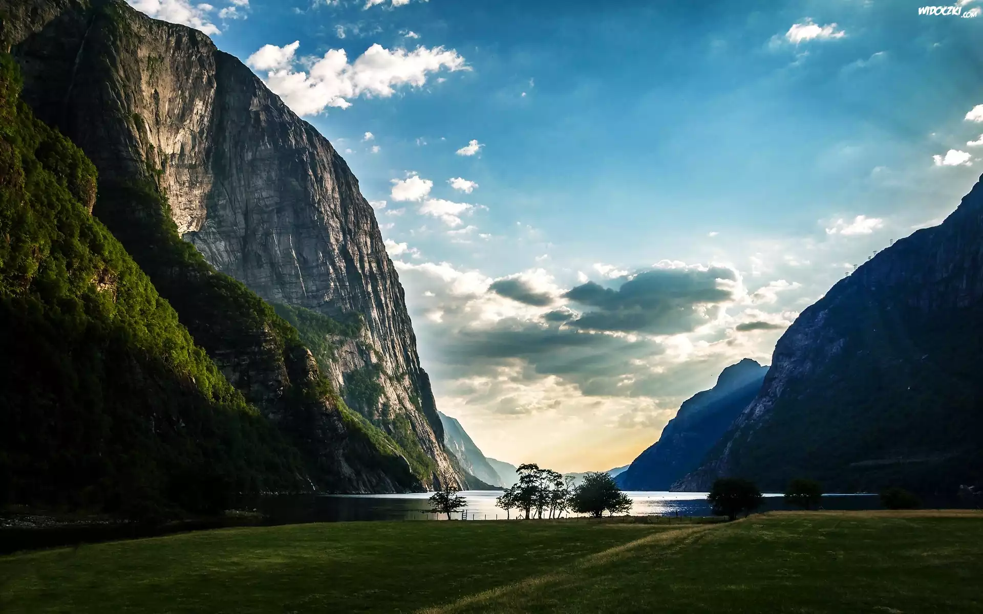 Góry, Drzewa, Jezioro Wodospad Góry, urwisko Jezioro, Mur, Drzewa, Domy Góra, Skały Pomost, Jezioro, Góry, Leżaki,  Wakacje Mazury, Polska, Jezioro Jezioro, Chmury, Zachód, Słońca, Odbicie Góra, Jeziora Jezioro, Mgła Góra, Jeziora Chmury, Noc, Jezioro, Las Góra, Niebo Góra, Jeziora, Wisona Góra, Jeziora
