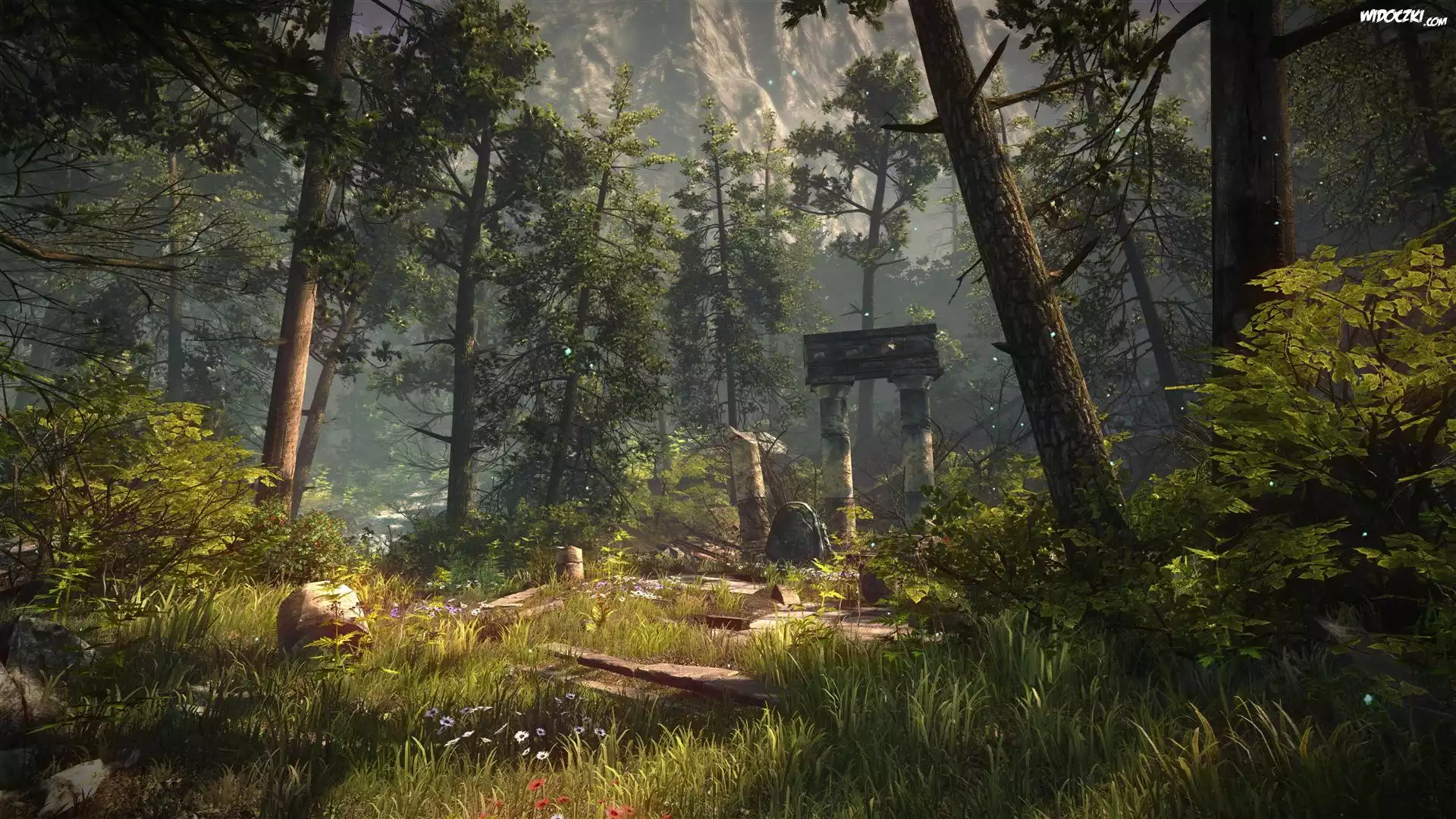 Skała, Las, Jesień Las, Kwiatki Zima, Drzewa, Przebijające, Światło Droga, Zima, Las, Ogrodzenie Jesień, Las Las, Żółte, Liście, Słońce Zachód Śłońca, Las, Drzewo Ścieżka, Las, Żółte, Liście, Drzew Las, Promienie, Słońca Las, Płotek Drzewo, Las, Niebieskie Niebo Las, Paprocie Zielona, Polana, Las Rzeka, Las, Jesień