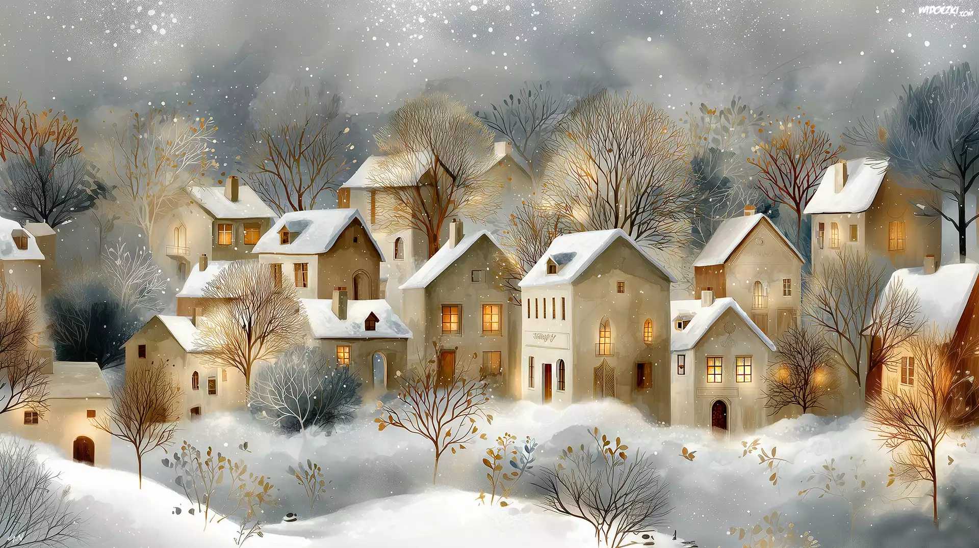 Zdjęcia, Śnieg, Grafika AI, Domy, Zima