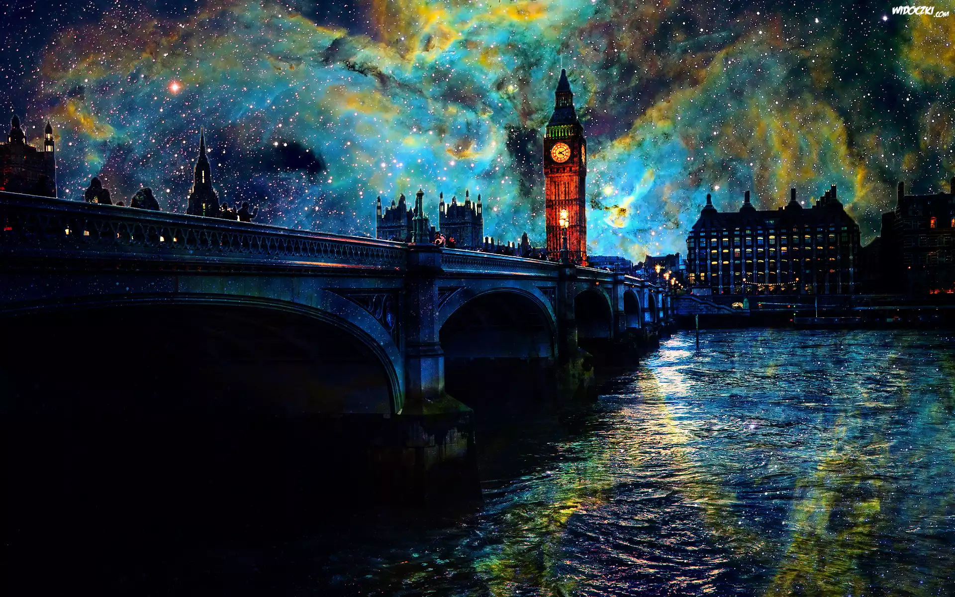 Grafika, Londyn, Most, Big Ben, Rzeka
