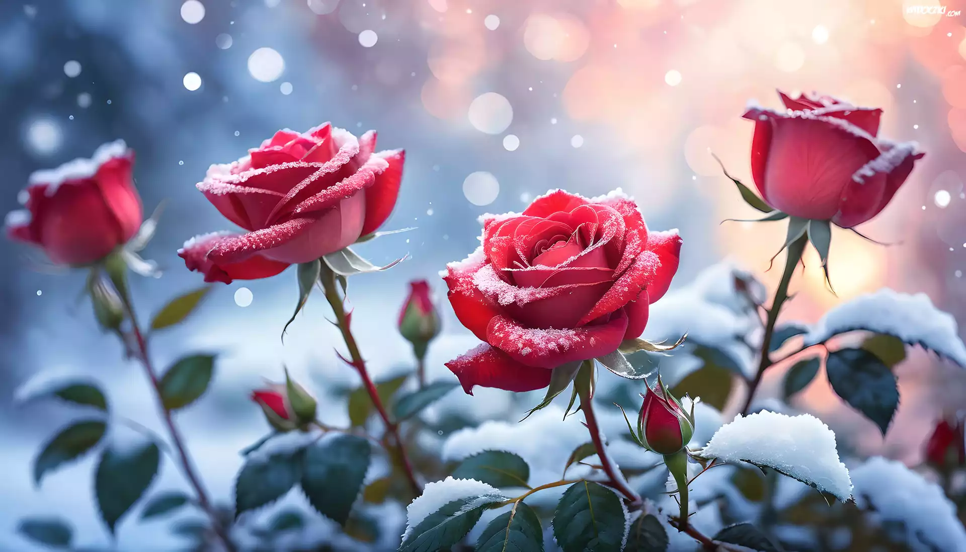 Zdjęcia, Czerwone, Róże, Śnieg, Grafika