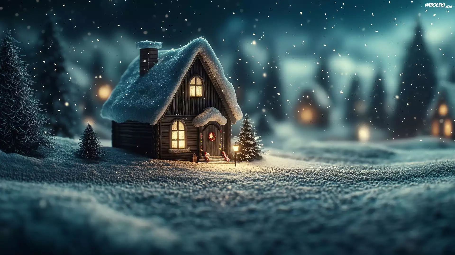 Zdjęcia, Dom, Noc, Śnieg, Grafika