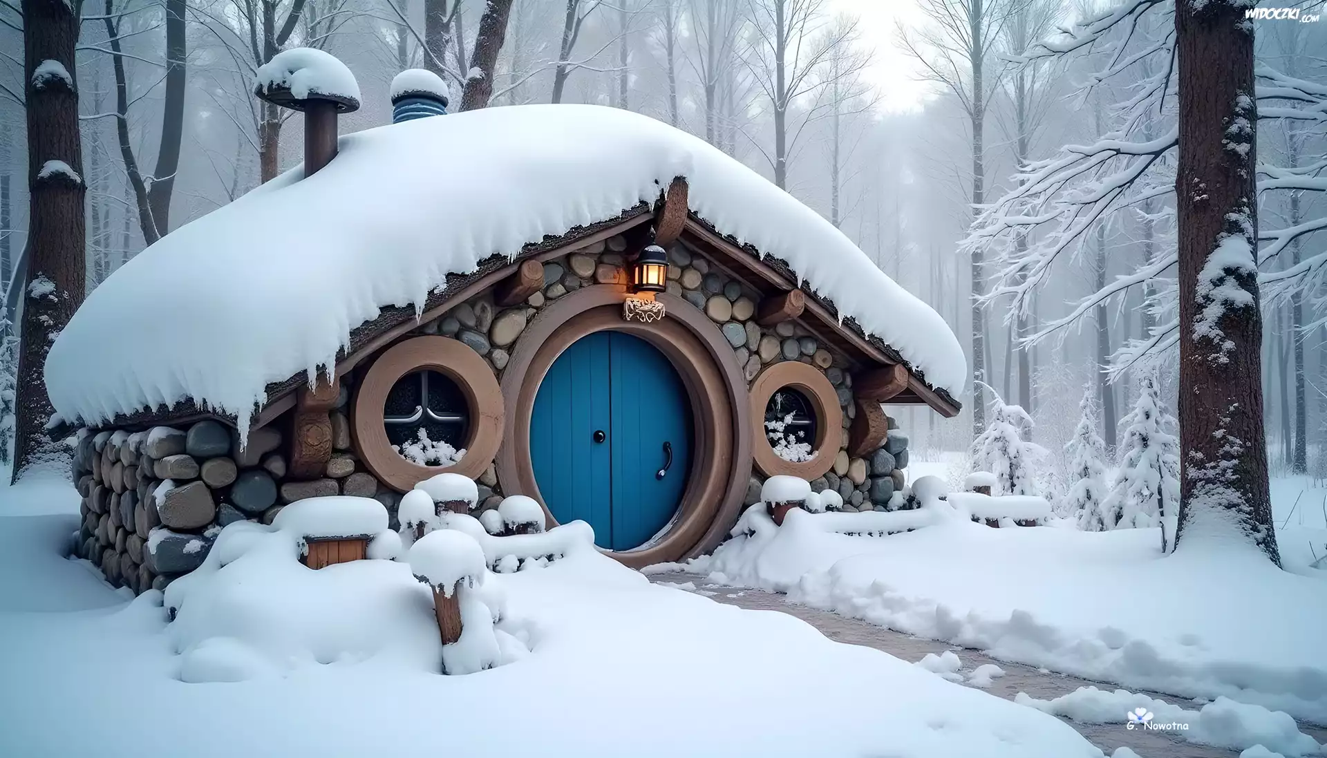 Domek, Hobbita, Zima, Grafika