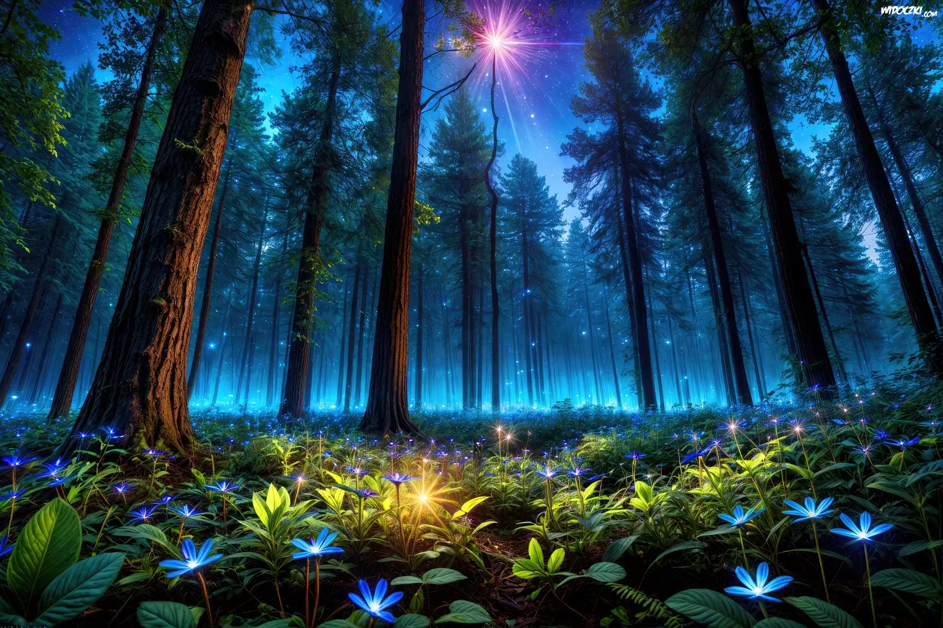Zdjęcia, Drzewa, Kwiaty, Las, Grafika