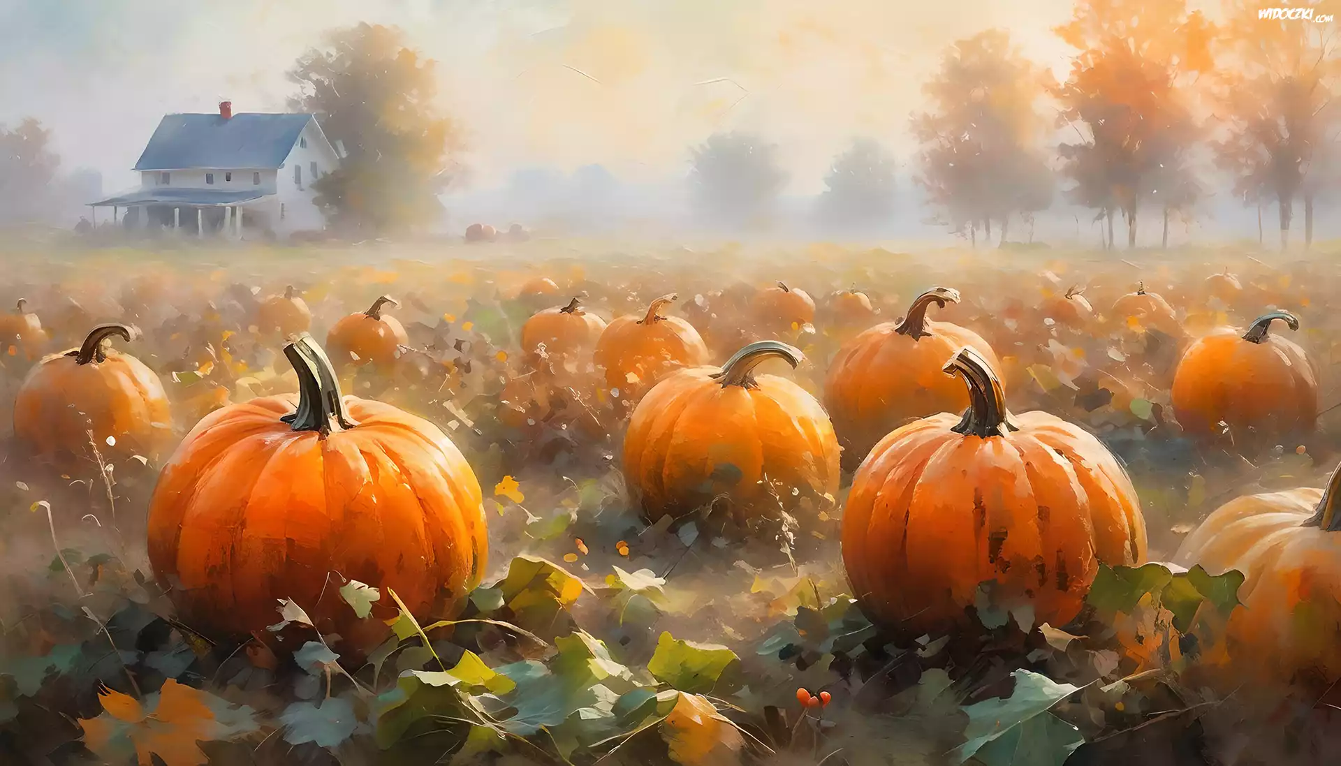 Zdjęcia, Dynie, Pole, Dom, Grafika