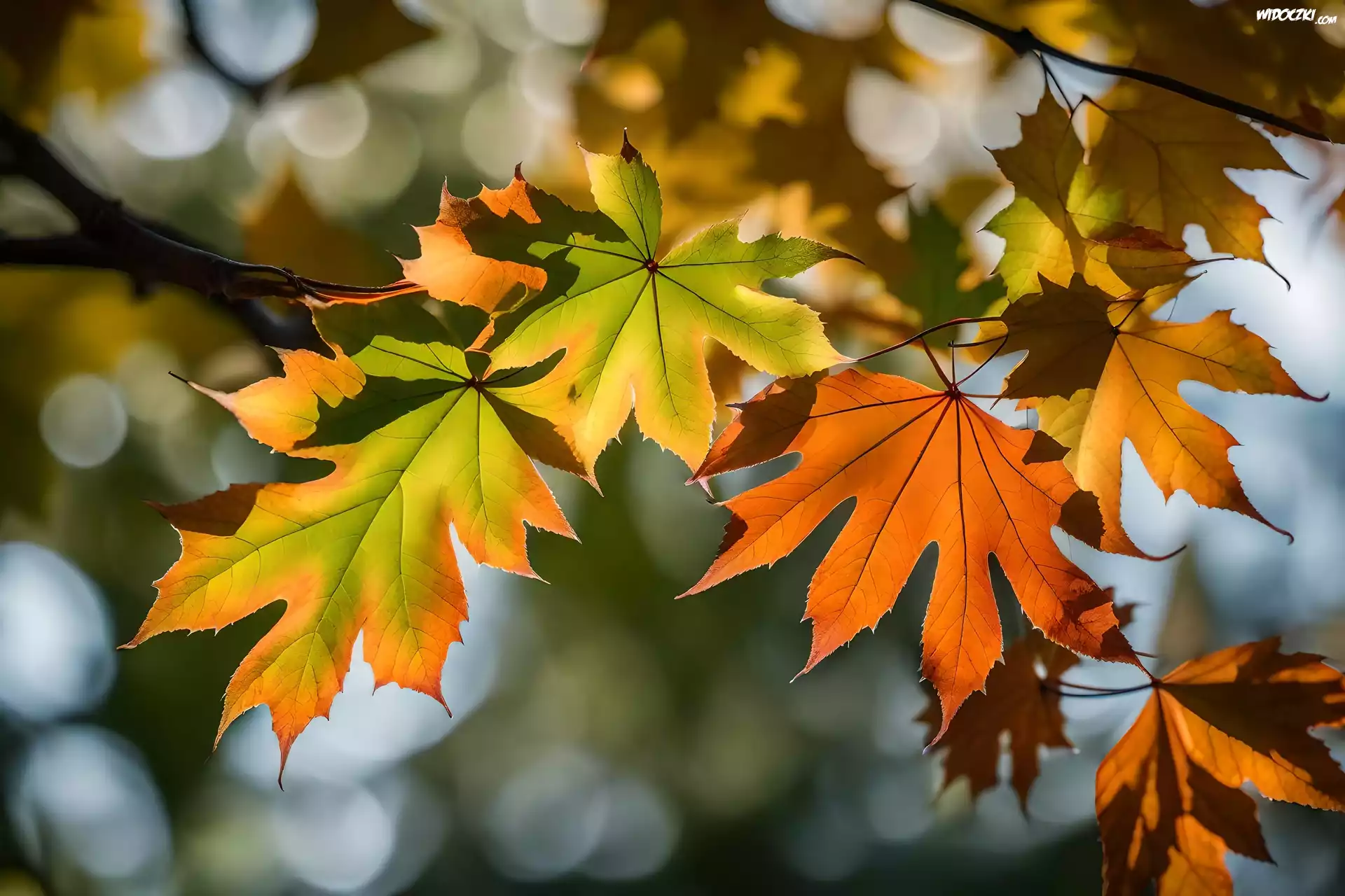 Zdjęcia, Gałąź, Liście, Jesień, Grafika