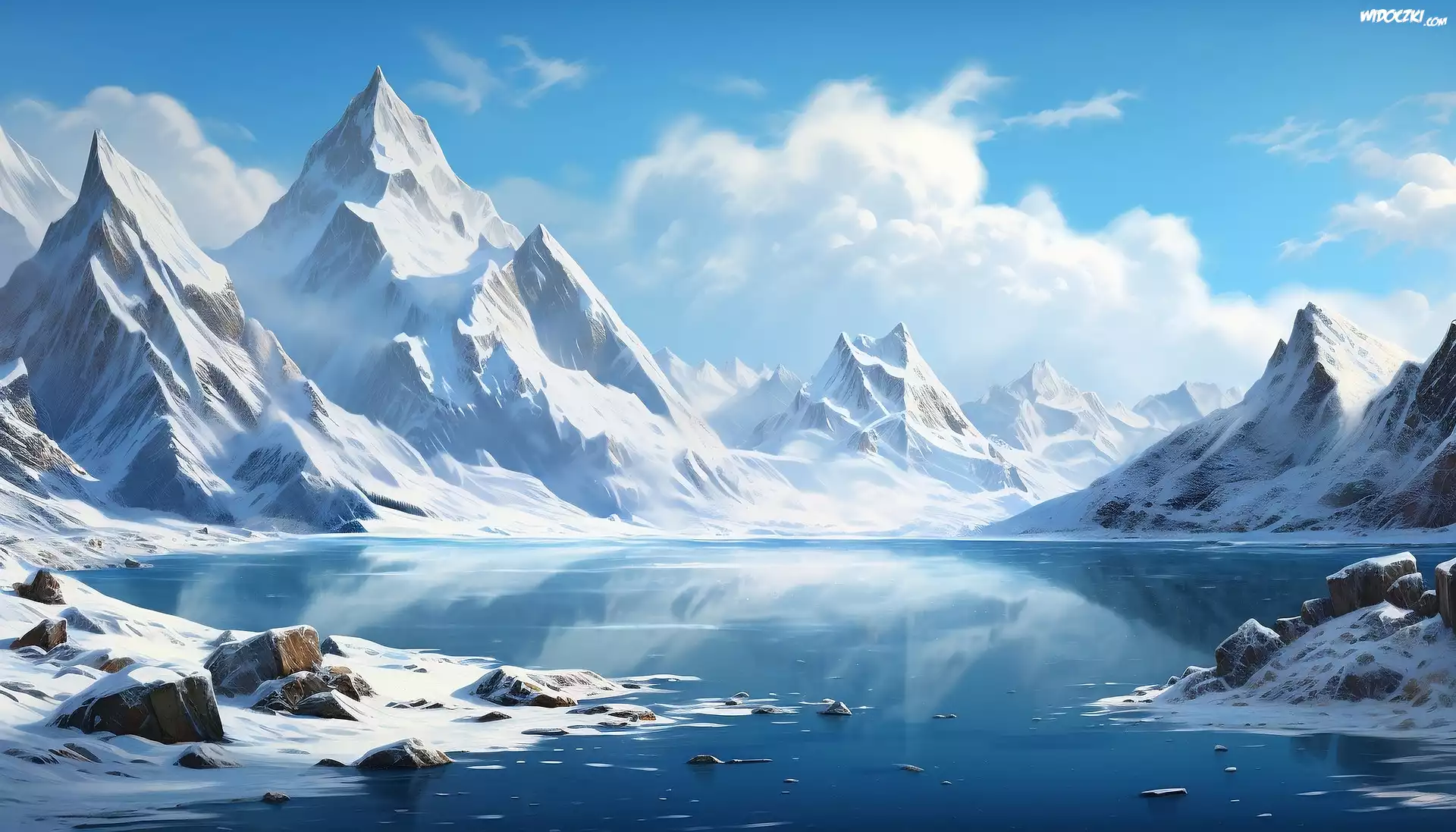 Góry, Jezioro, Zima, Grafika