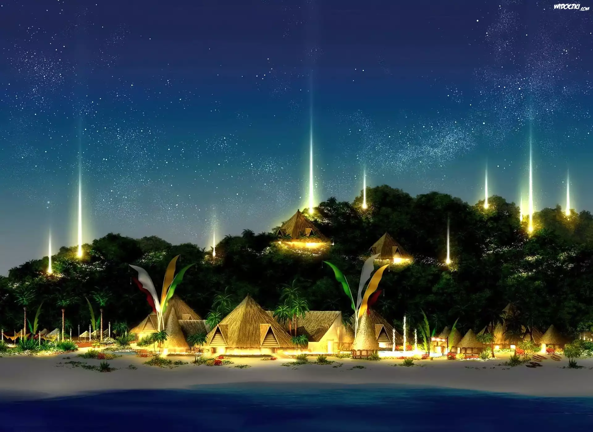 Zdjęcia, Grafika, Hotel, Plaża, Gwiazdy, Niebo