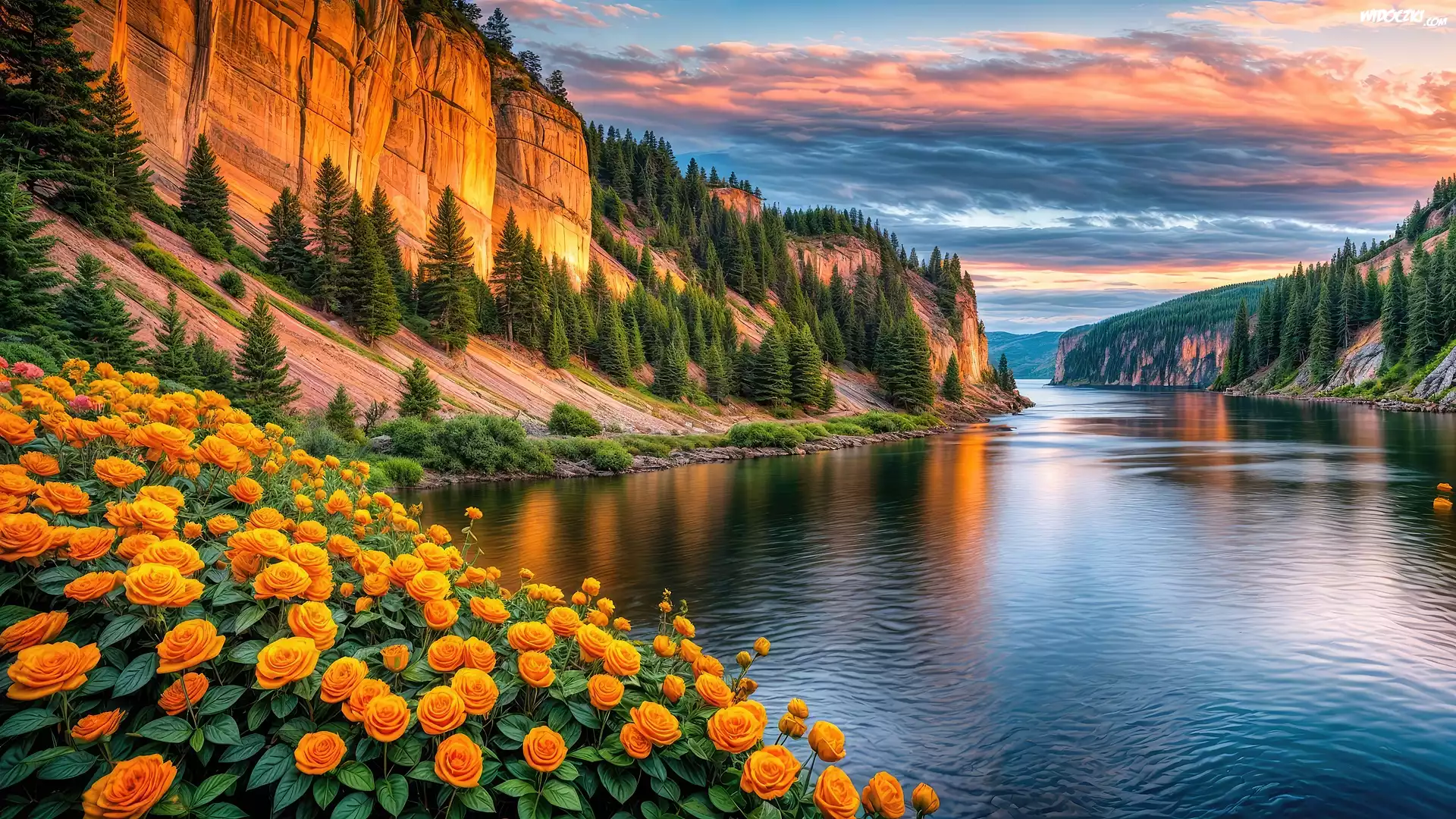 Zdjęcia, Kwiaty, Góry, Rzeka, Grafika