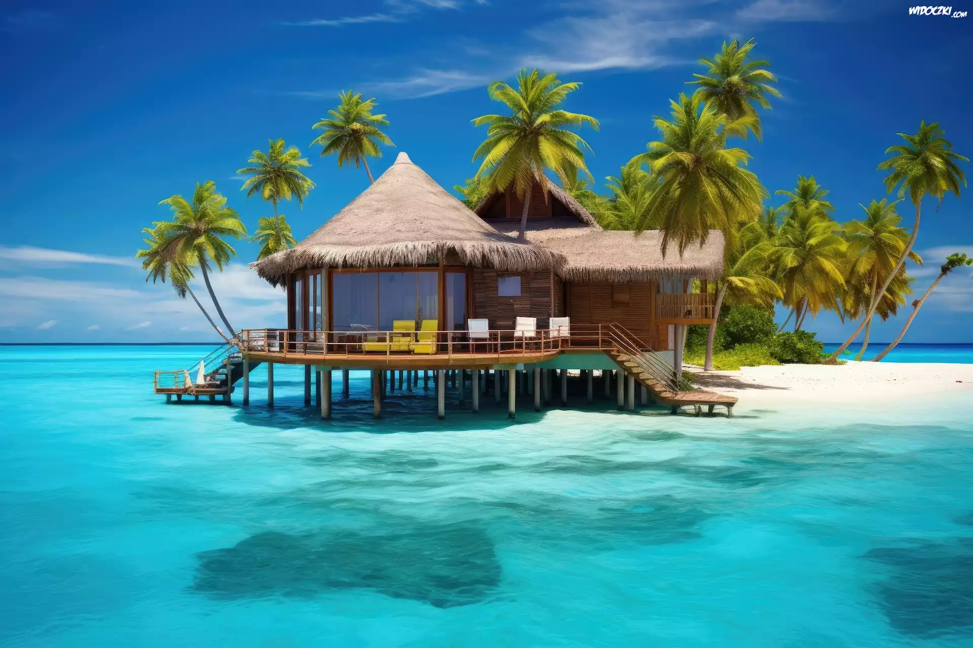Zdjęcia, Morze, Domek, Palmy, Grafika