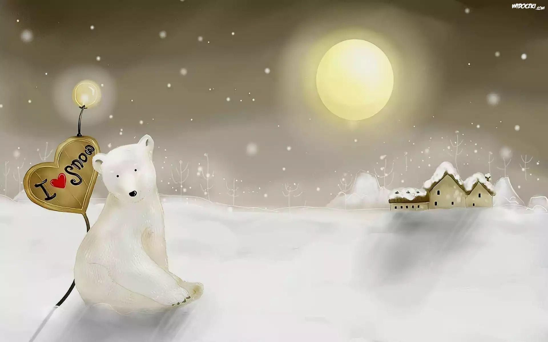 Grafika, Fantasy, Biały, Misiu, Śnieg, Zima